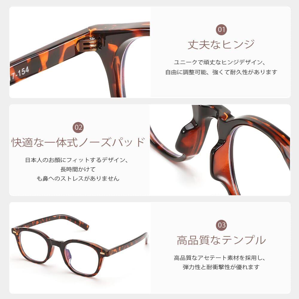 付属品:外装ケース、メガネケース、メガネ本体、メガネ拭き、ブルーライトカットテストカード。日本人の顔幅を合わせて設計されるパソコン用メガネで、日常生活に自分用だけでなく、友達や家族や恋人などの人へのプレゼントとしても人気があります。また、ビジネス場合、外出、旅行などにも最適です。このメガネは、特にファッションや個性を重視する方に人気があり、レトロな雰囲気を楽しみたい方におすすめです