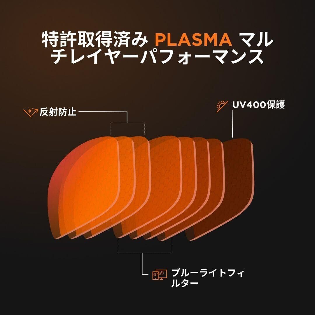 ️ 取得済み PLASMA 技術(アンバー):ゲーミンググラス。380nmから400nmのブルーライトを100%カット // スペクトル全体で86%カット [380nmから450nm]。100% UV保護を提供します。