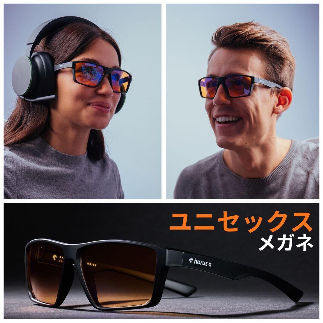 [Horus X] ゲーミンググラス|ブルーライトカットメガネ ブルーライトカットPCメガネ|男女兼用 アンバー