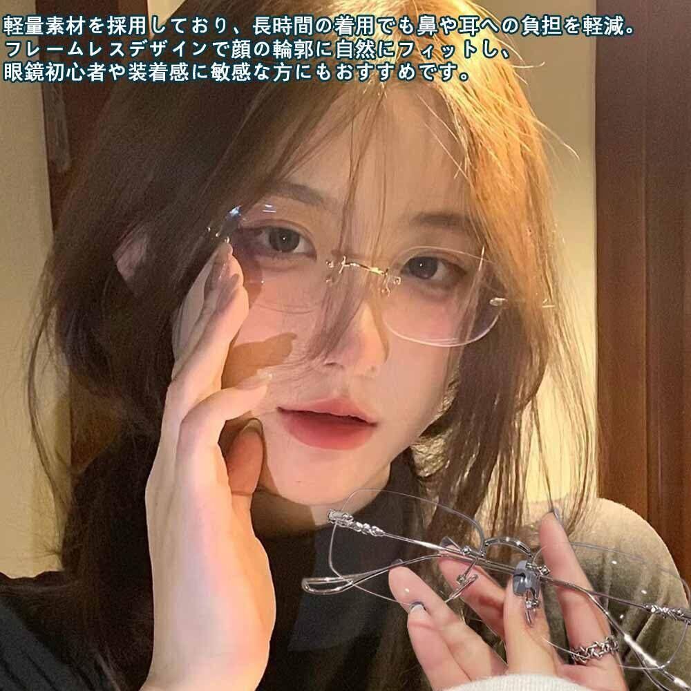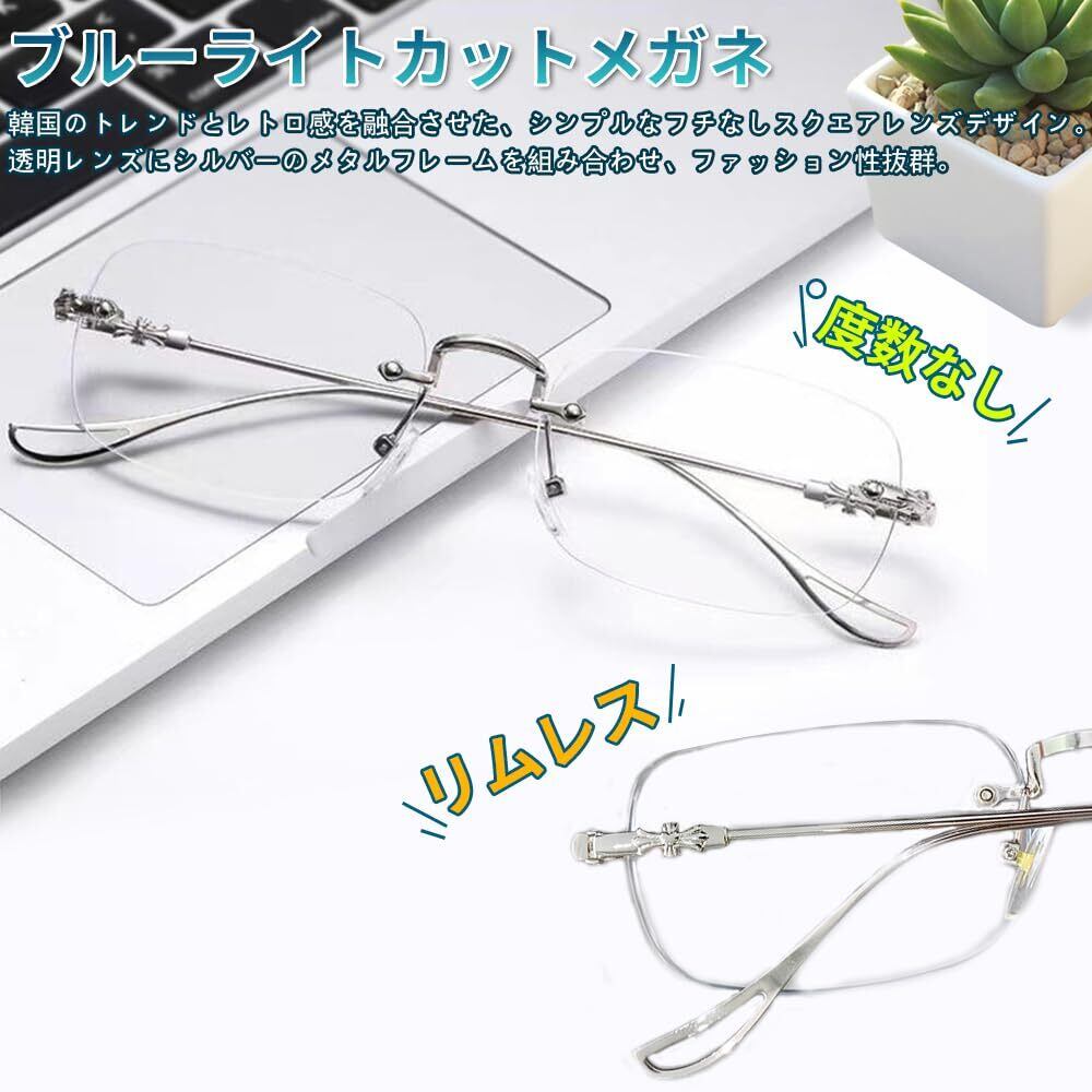 [KASELIN] リムレス メガネ クリアメガネ フチなし 【青色光防止】 ブルーライトカット 眼鏡 スクエア レンズ リムレス PC用 スマホ用 男女兼用 度無し