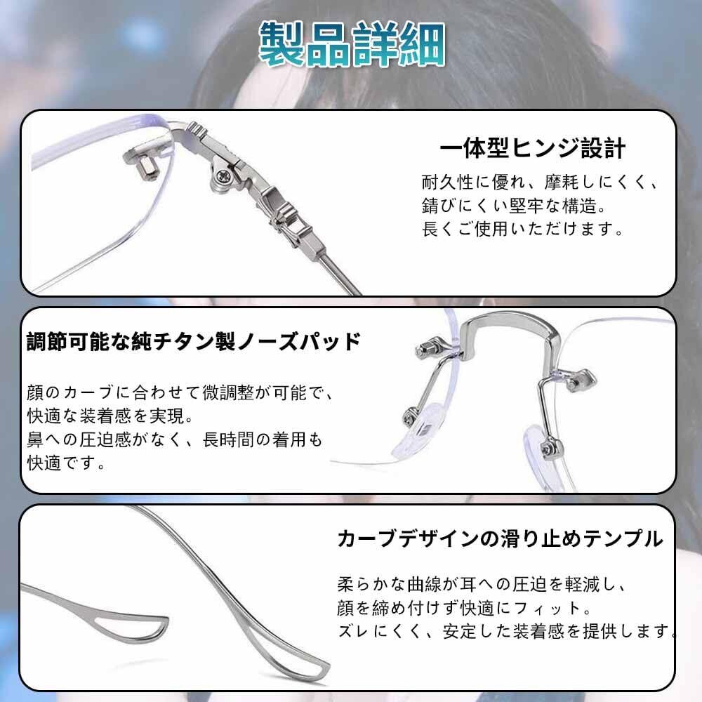 【軽量設計で快適な着け心地】軽量素材を採用しており、長時間の着用でも鼻や耳への負担を軽減。フレームレスデザインで顔の輪郭に自然にフィットし、眼鏡初心者や装着感に敏感な方にもおすすめです。