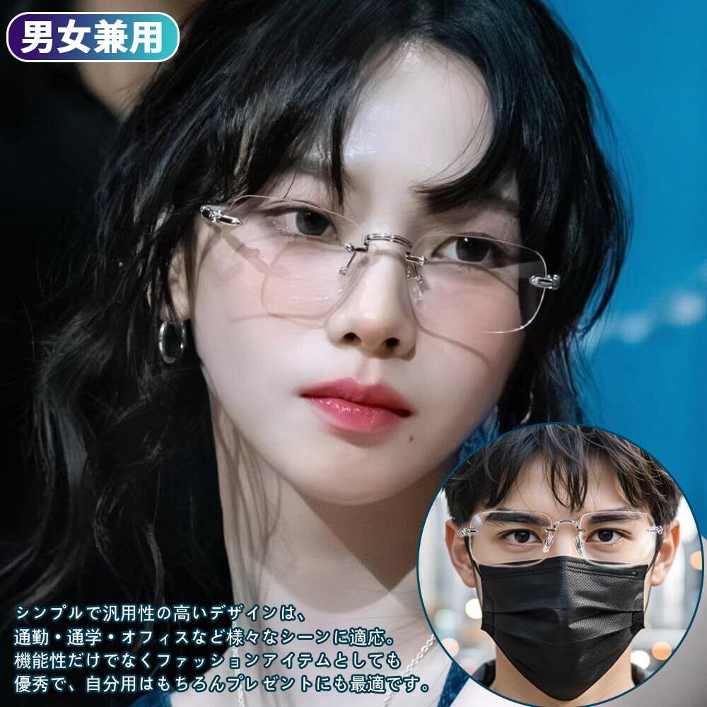 【トレンド感あふれる韓国風スタイル】韓国のトレンドとレトロ感を融合させた、シンプルなフチなしスクエアレンズデザイン。透明レンズにシルバーのメタルフレームを組み合わせ、ファッション性抜群。普段のコーディネートにも簡単に取り入れられ、スタイリングのアクセントとして活躍します。