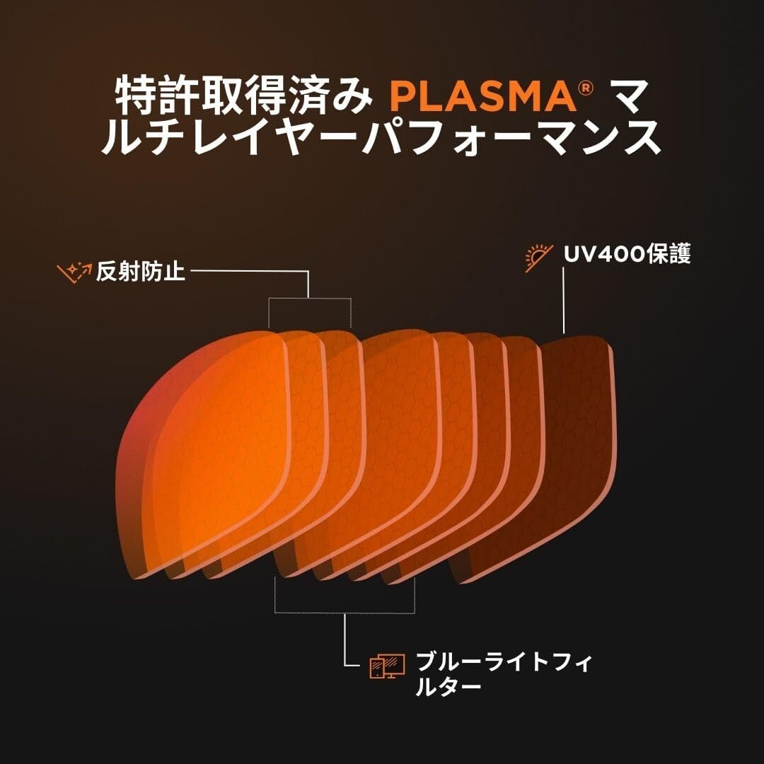 ️ 取得済み PLASMA 技術(アンバー):ゲーミンググラス。380nmから400nmのブルーライトを100%カット // スペクトル全体で86%カット [380nmから450nm]。100% UV保護を提供します。