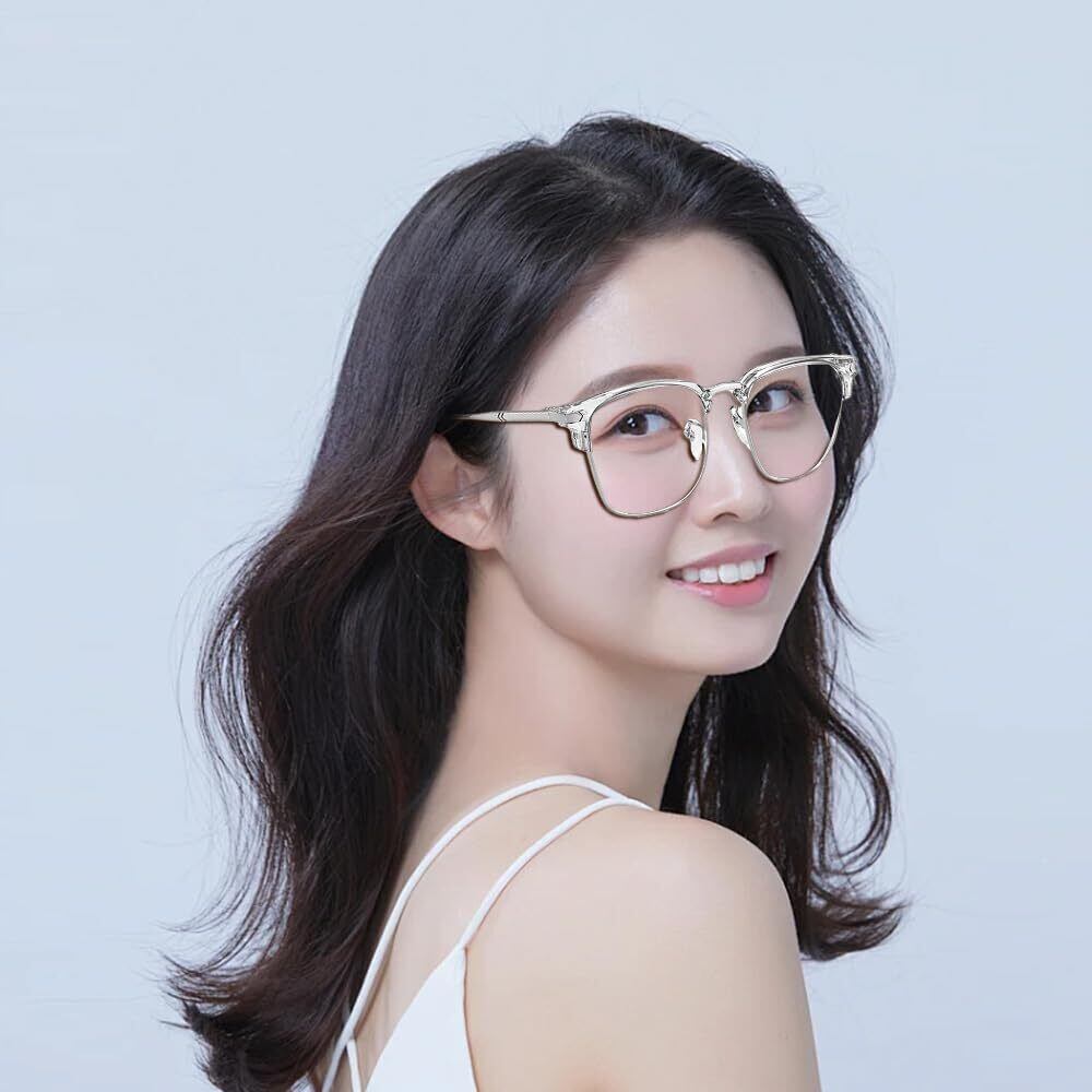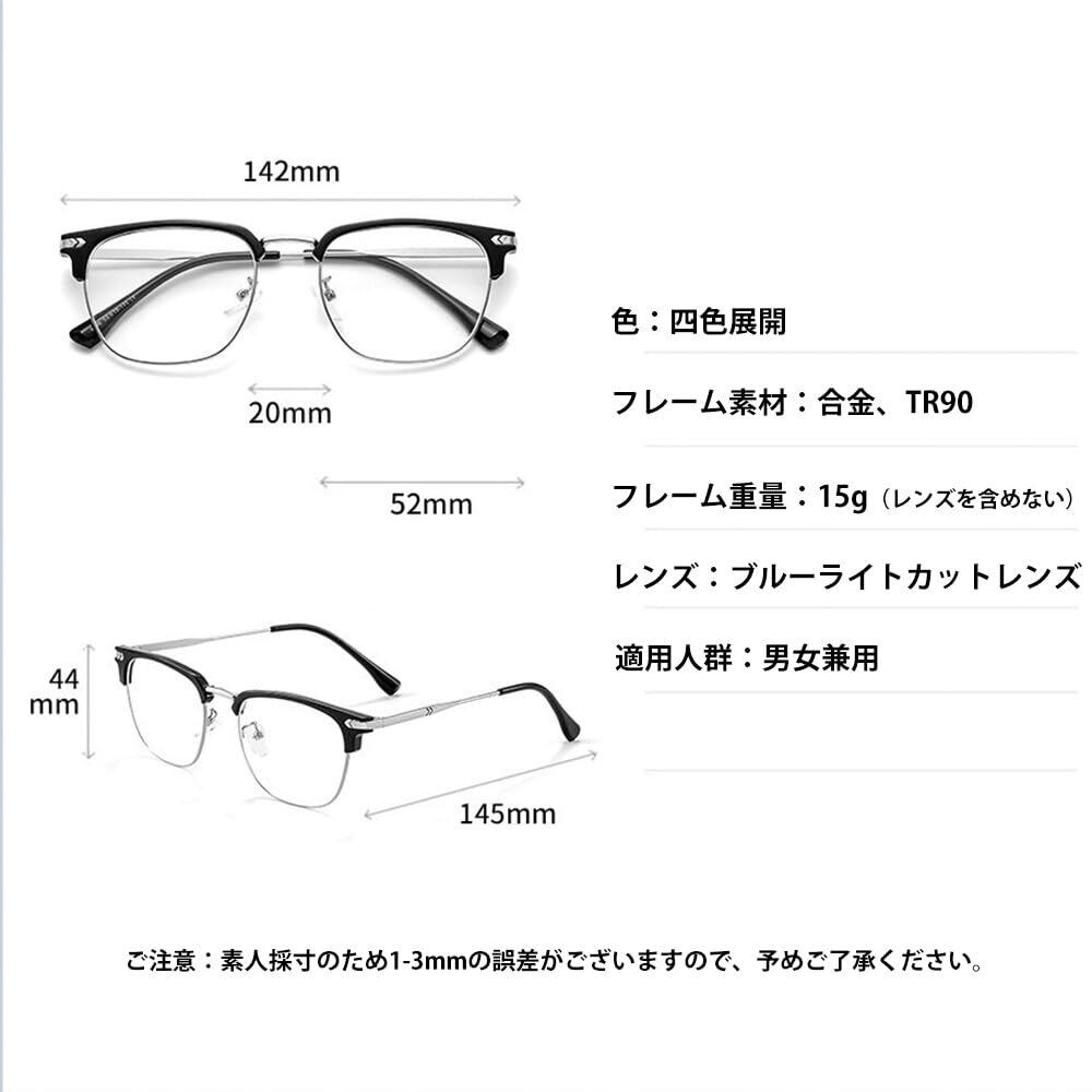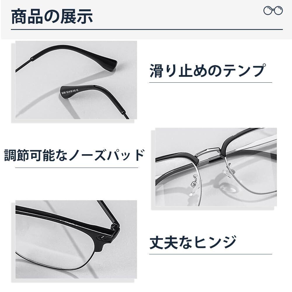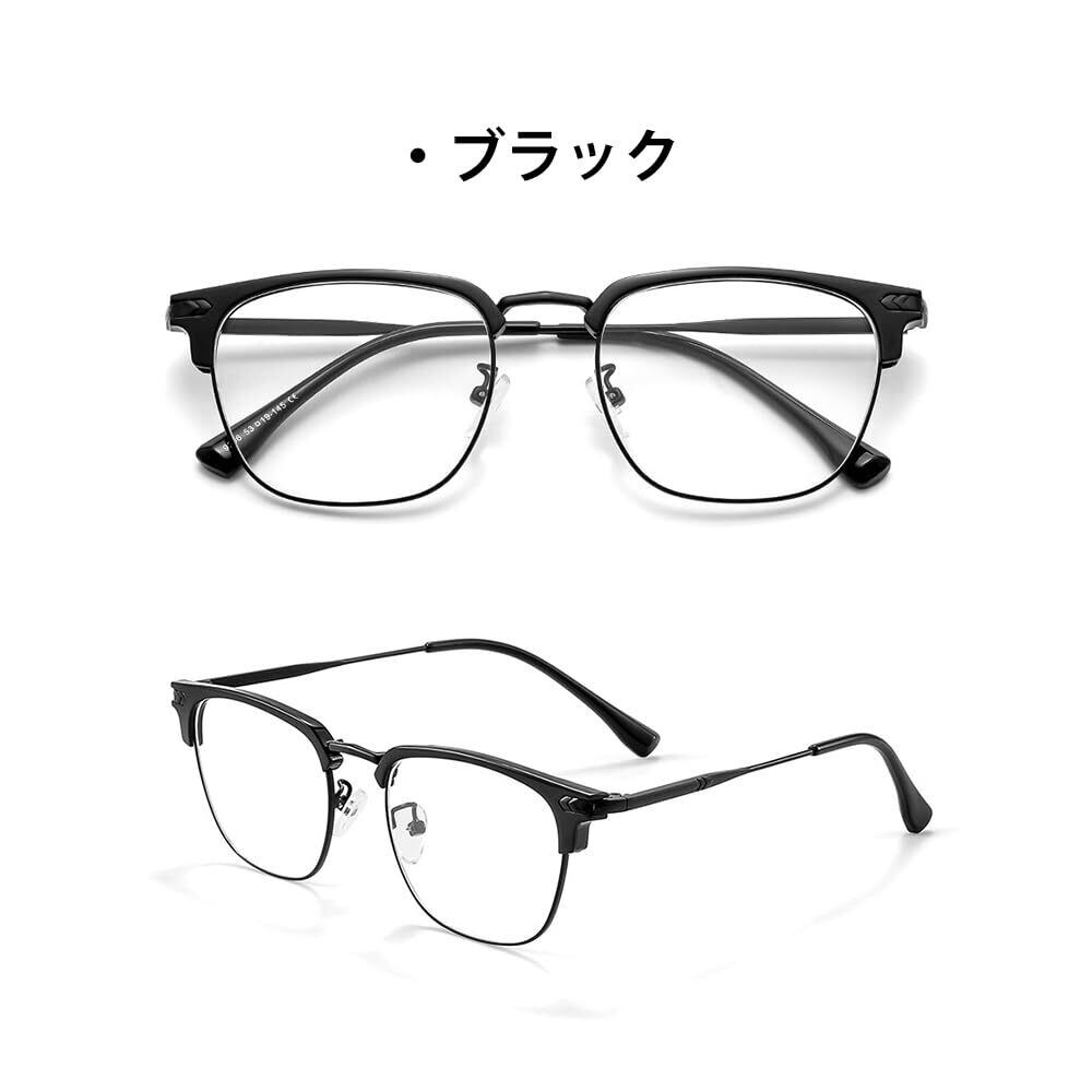 [FEISEDY] サーモント メガネ 伊達メガネ ブルーライトカット メガネ ハーフリム クリアレンズ PCメガネ 度なし 軽量 クラシック スクエア おしゃれ メンズ レディース 男女兼用 B1217