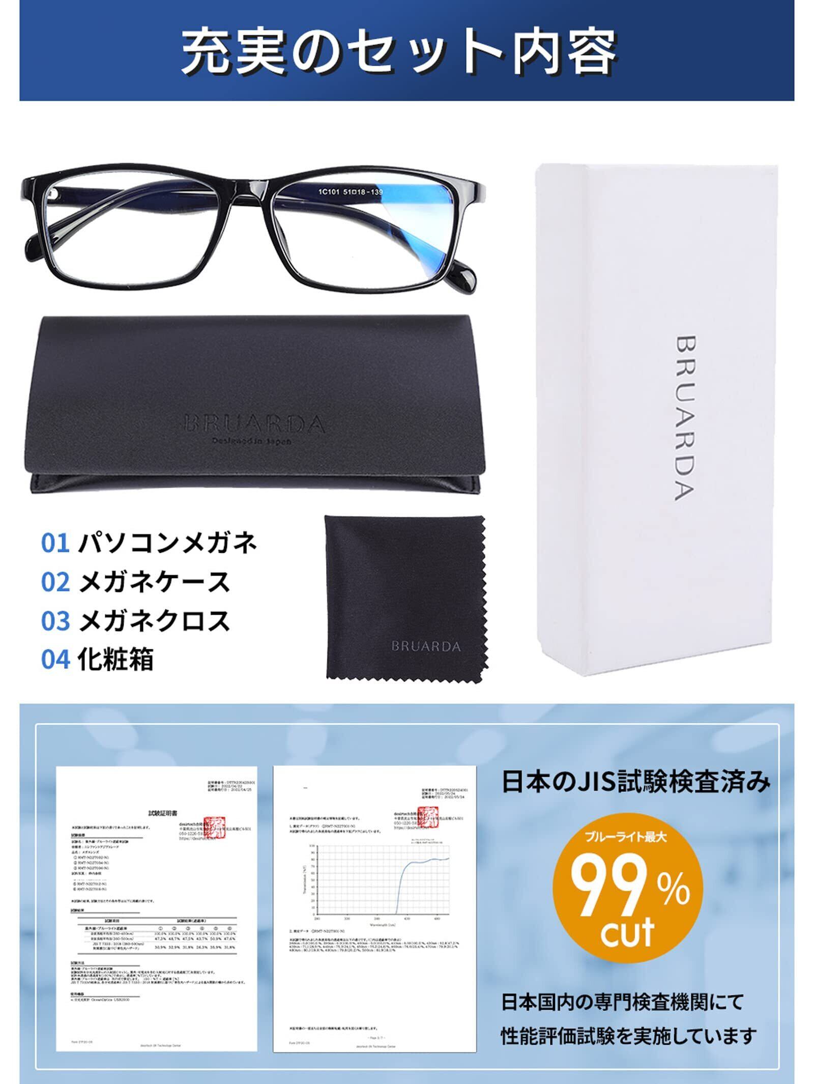 [Bruarda] ブルーライトカット パソコンメガネ UVカット 軽量 度なし 男女兼用 伊達メガネ