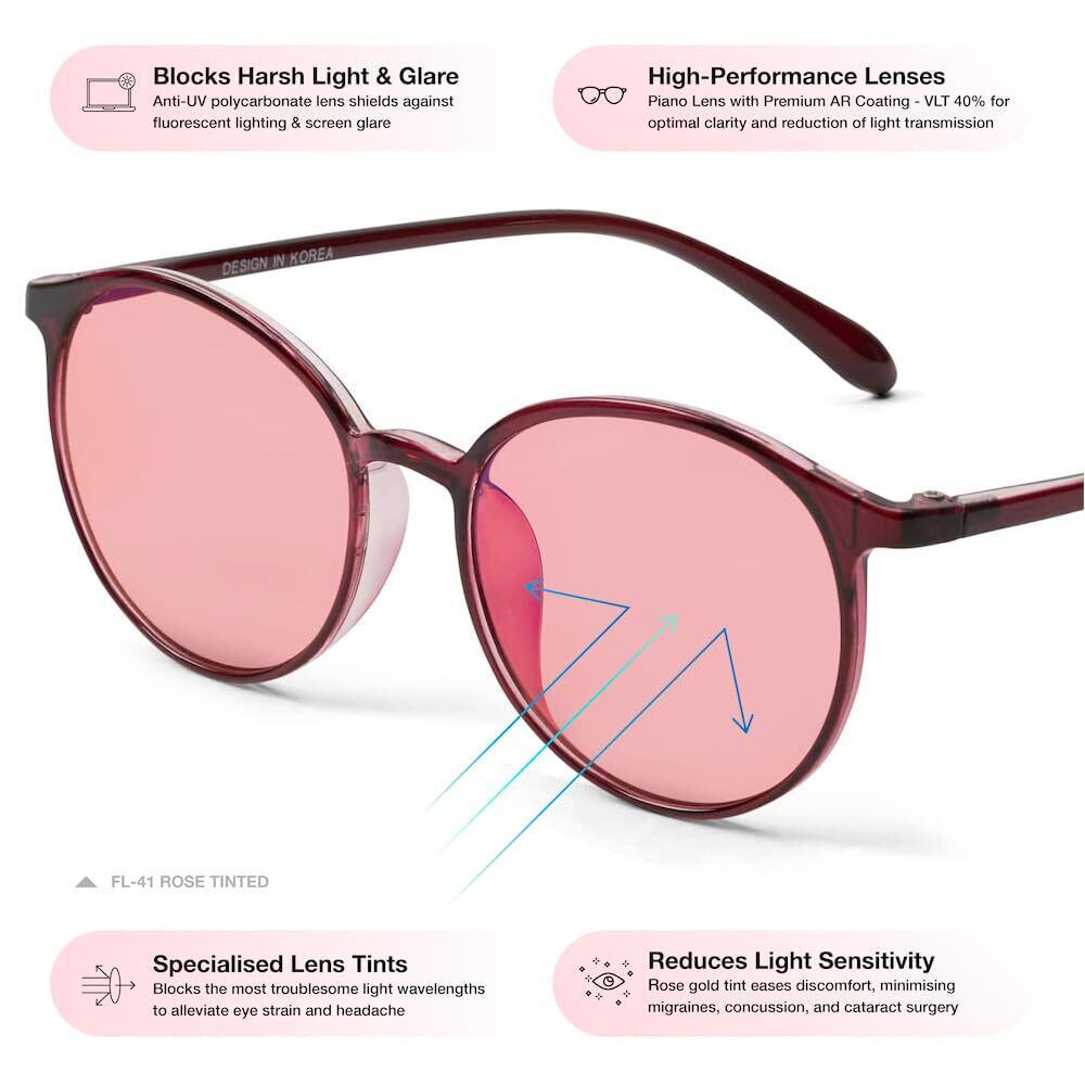 室内 FL-41 ローズ&アウトドア FL-60 ブラウン ティント 片頭痛 光感度メガネ 蛍光LEDグレア、光恐怖症、コンピューター使用用 標準
