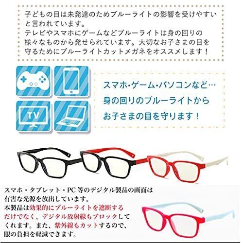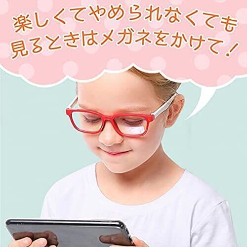 キッズ用 ブルーライトカットメガネ PC眼鏡 度なし クリアレンズ おしゃれ パソコン スマホ 子ども用 男女兼用 ゲーム 目の守る PS4 スイッチ switch JIS検査済 花粉 飛沫 紫外線 対策 3歳〜12歳 (レッドxホワイト)