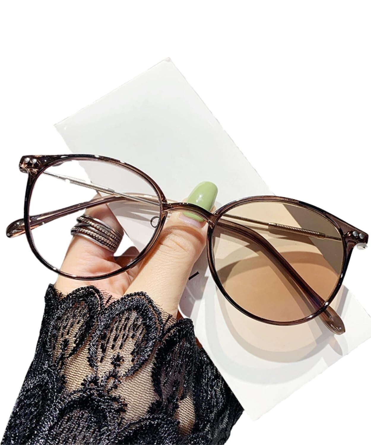 [Harunowa] ブルーライトカット PCメガネ レディース 度なし サングラス 調光 伊達メガネ オシャレ 小さめ