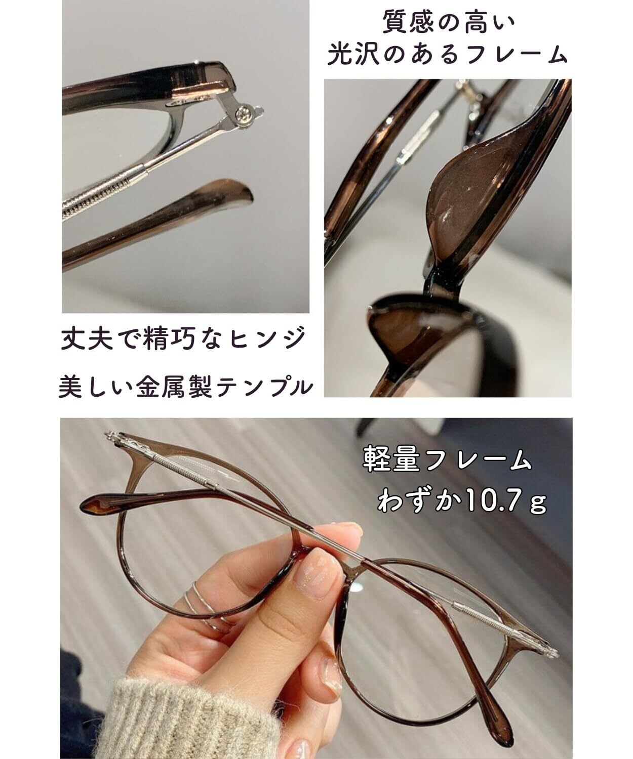 【まるで掛けていないかのような驚異の軽さ、わずか19.7g】 高品質なPC素材と軽量合金を採用することで、重さ約19.7gを実現しました。長時間のリモートワークや読書でも耳や鼻が痛くなりにくく、ストレスフリーなかけ心地。メガネをかけていることを忘れるほどの快適さが、あなたの毎日をサポートします。