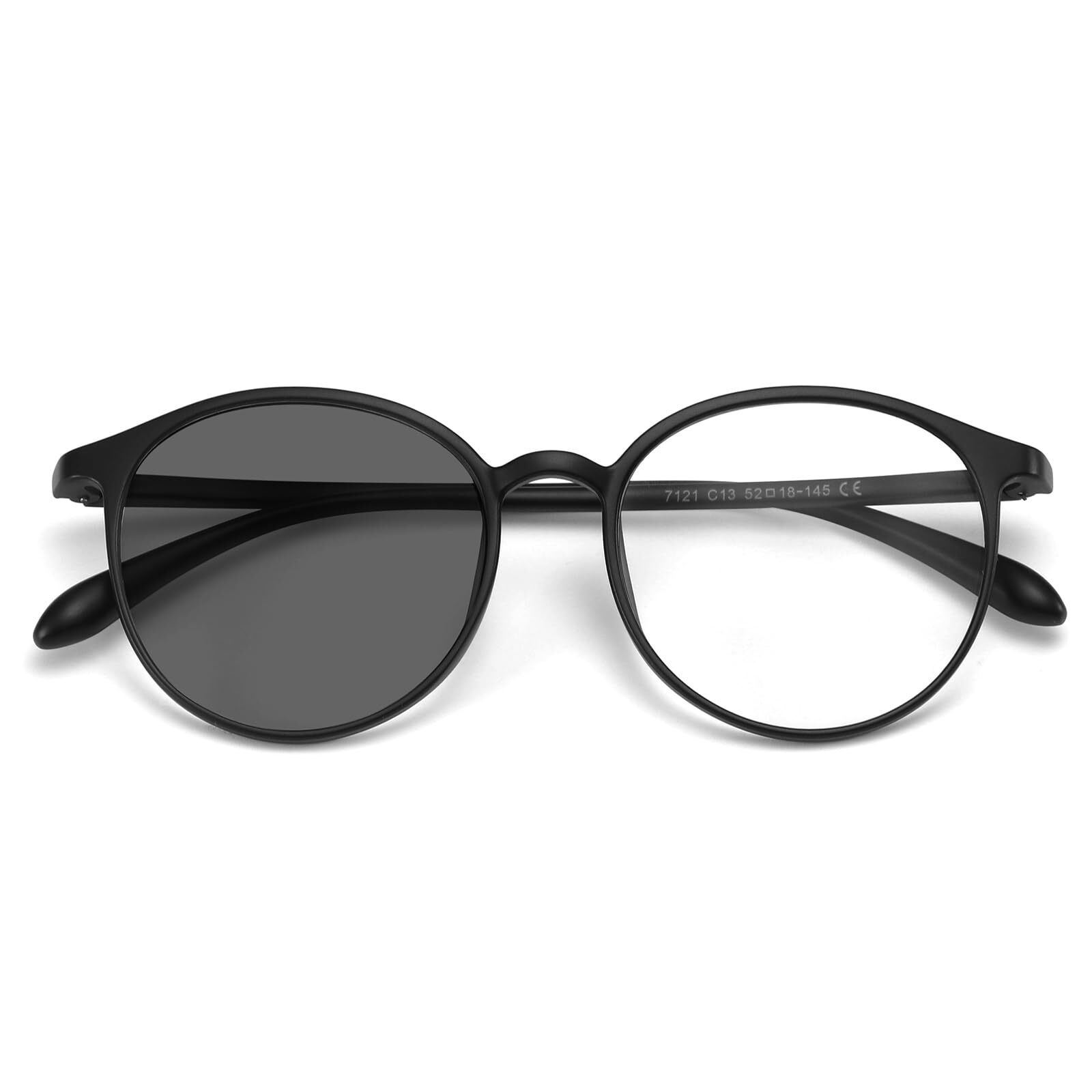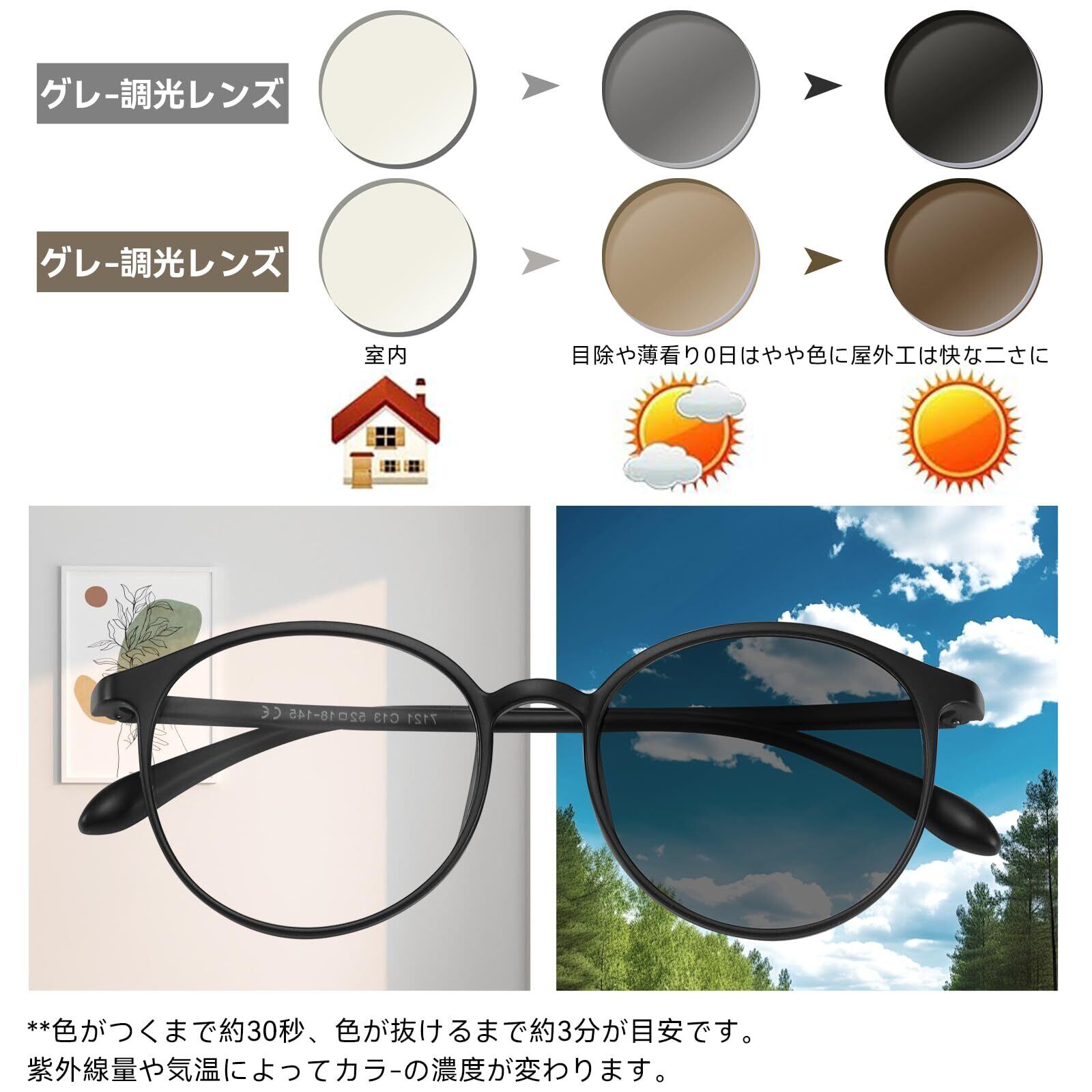[Dollger] ブルーライトカットメガネ 調光メガネ 度なし 調光レンズ 屋外サングラス 室内透明メガネ 調光サングラス パソコンメガネ 超軽量13g 紫外線カット 丸めがね