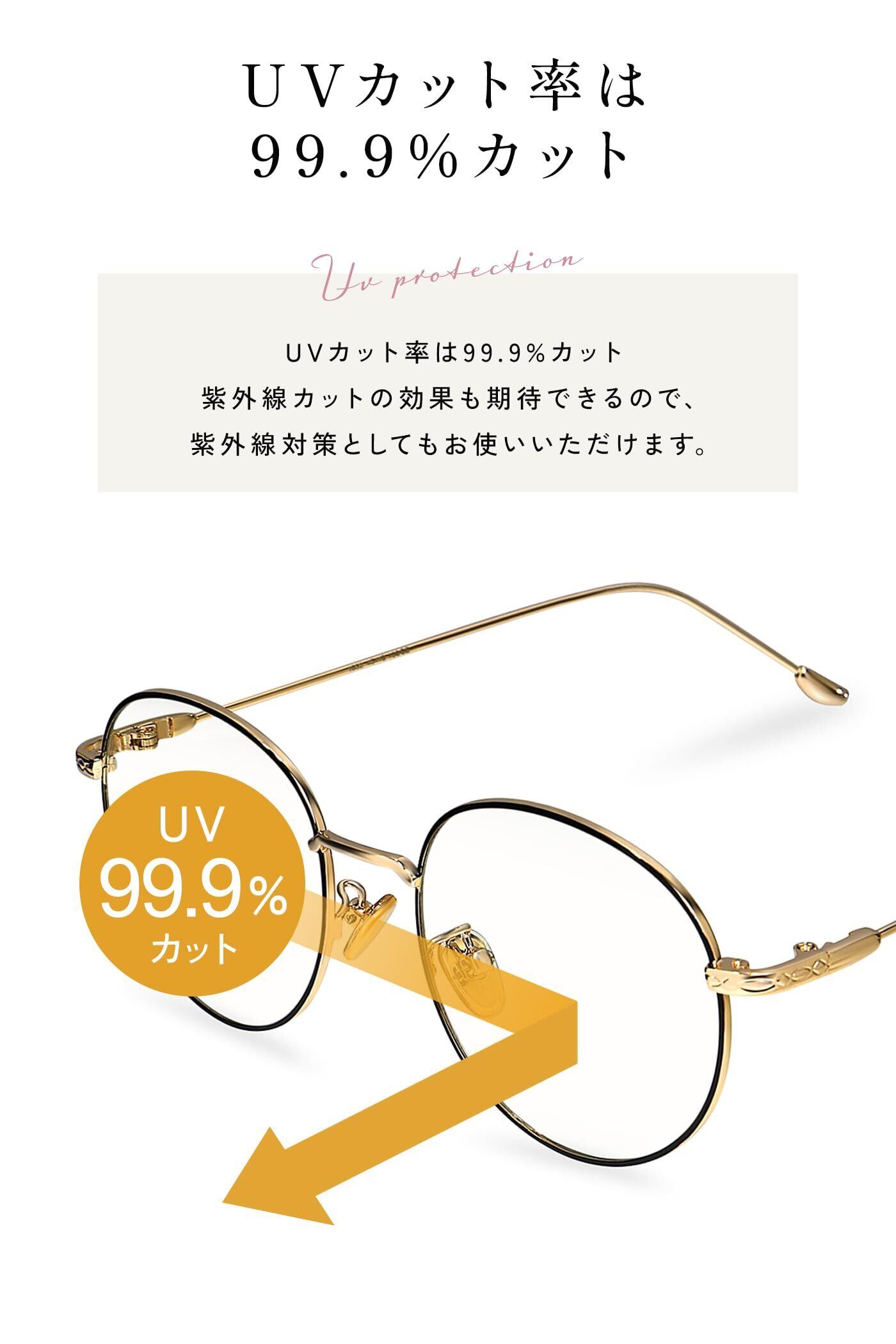 【ブルーライトカット率最大99.9%】 日本工業規格(JIS)に基づく試験の結果、 ”眼への健康への影響”が懸念される400nmのカット率が99.9%、410nmのカット率が96%という試験結果が出ております。 UVカット率は99.9%カット 紫外線カットの効果も期待できるので、紫外線対策としてもお使いいただけます。