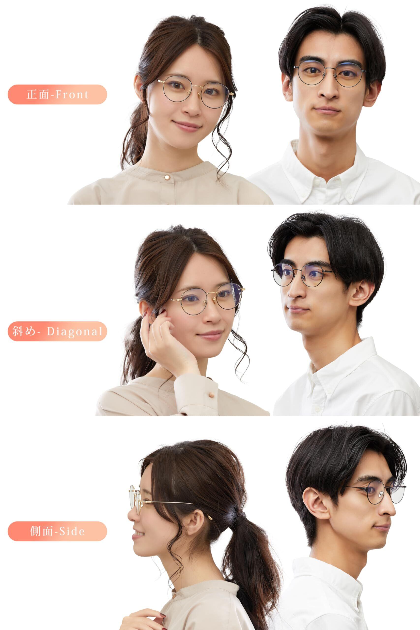 【商品仕様】寸法 :レンズ直径(片方) 52mm × 46mm / ブリッジ(鼻パッドの部分) 17mm / フロント 121mm / テンプル(サイド部分の長さ) 140mm ※着用参考サイズ:小顔 130~134mm / 中顔 135~139mm / 大顔 140~145mm(独自設計により130-155mmまで幅広く使用可能) ・付属品 オリジナルメガネケース オリジナルクロス ・フレーム重量:約14g ・素材:金属 ・期間:購入日より60日間