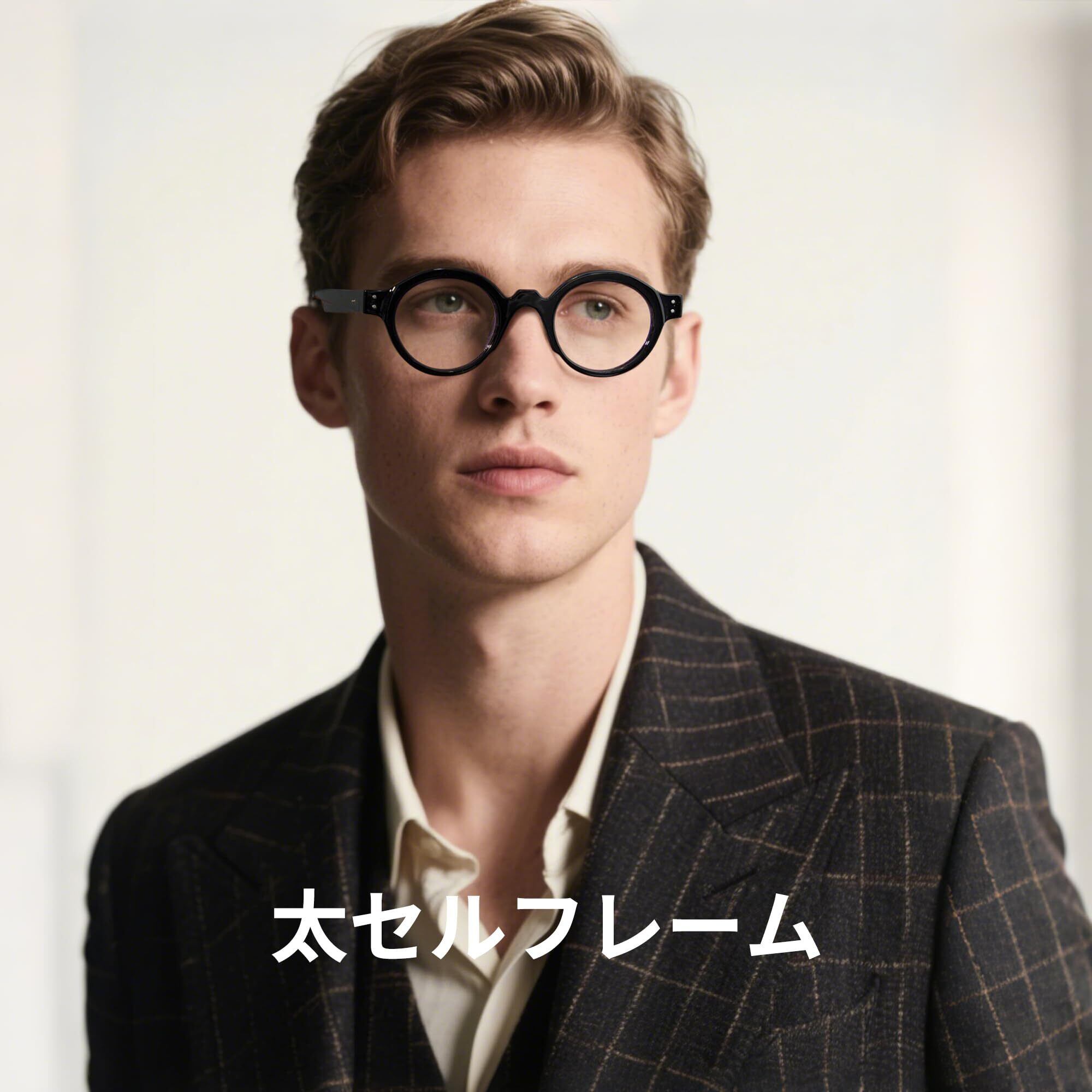 太セルフレーム:太セルの魅力といえば『顔が変わる』『個性をより演出できる』という点です。太セルフレームはボリュームがあり、その存在感が目元に力強さを与えてくれます。手軽にいつもの自分との変化が楽しめる点で魅力があります