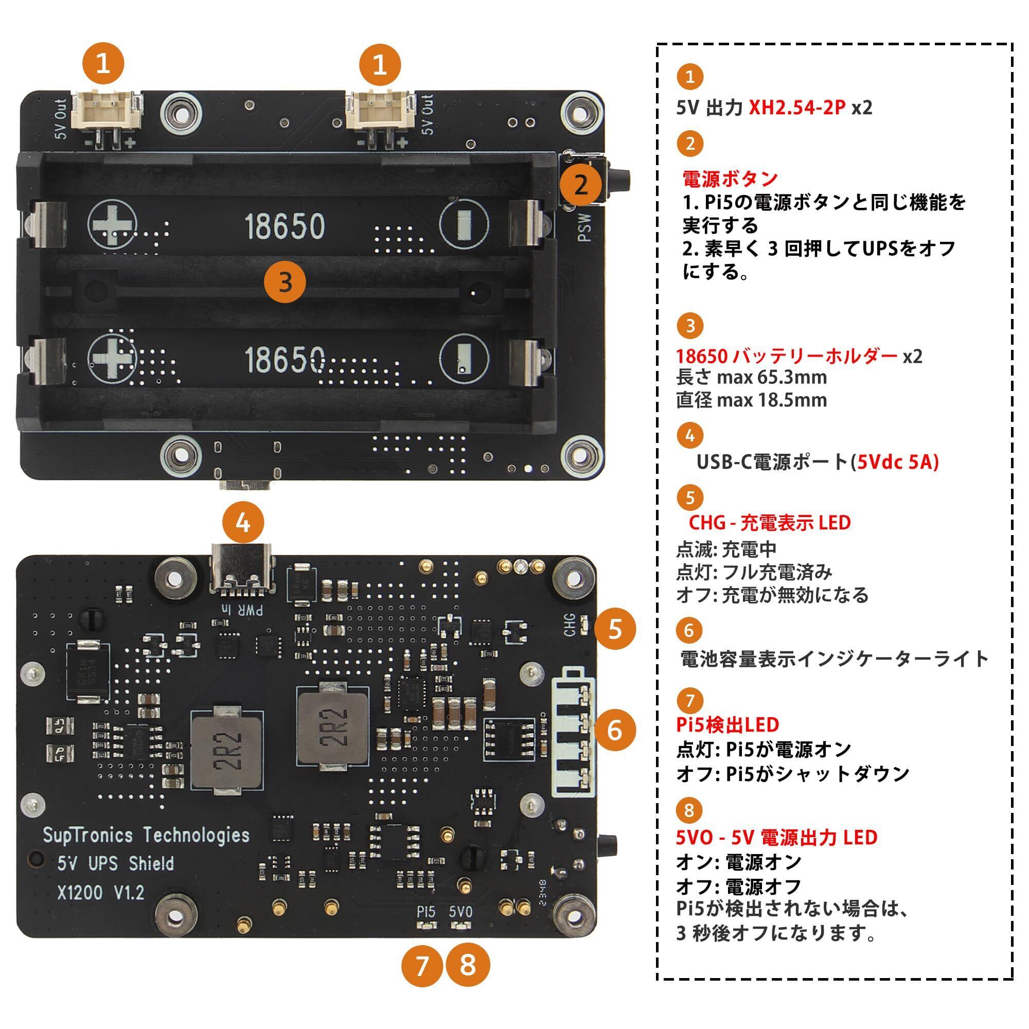 X1200 UPS:Raspberry Pi 5 に適用する電源管理拡張ボード;