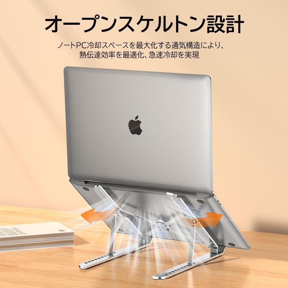 【効率的な放熱設計】 高品質のアルミニウム合金を使用し、特殊なメッシュ構造で放熱性能を最大化。ノートパソコンの熱を効率的に逃がし、デバイスのパフォーマンスを維持します。夏場の高温環境でも安心して使用でき、ノートPCの寿命を延ばすのに役立ちます。