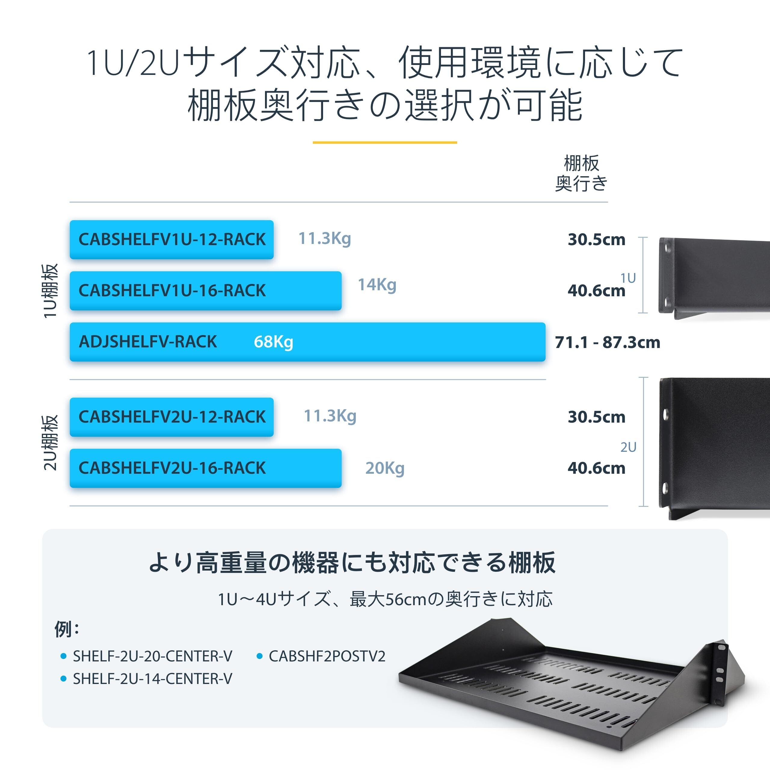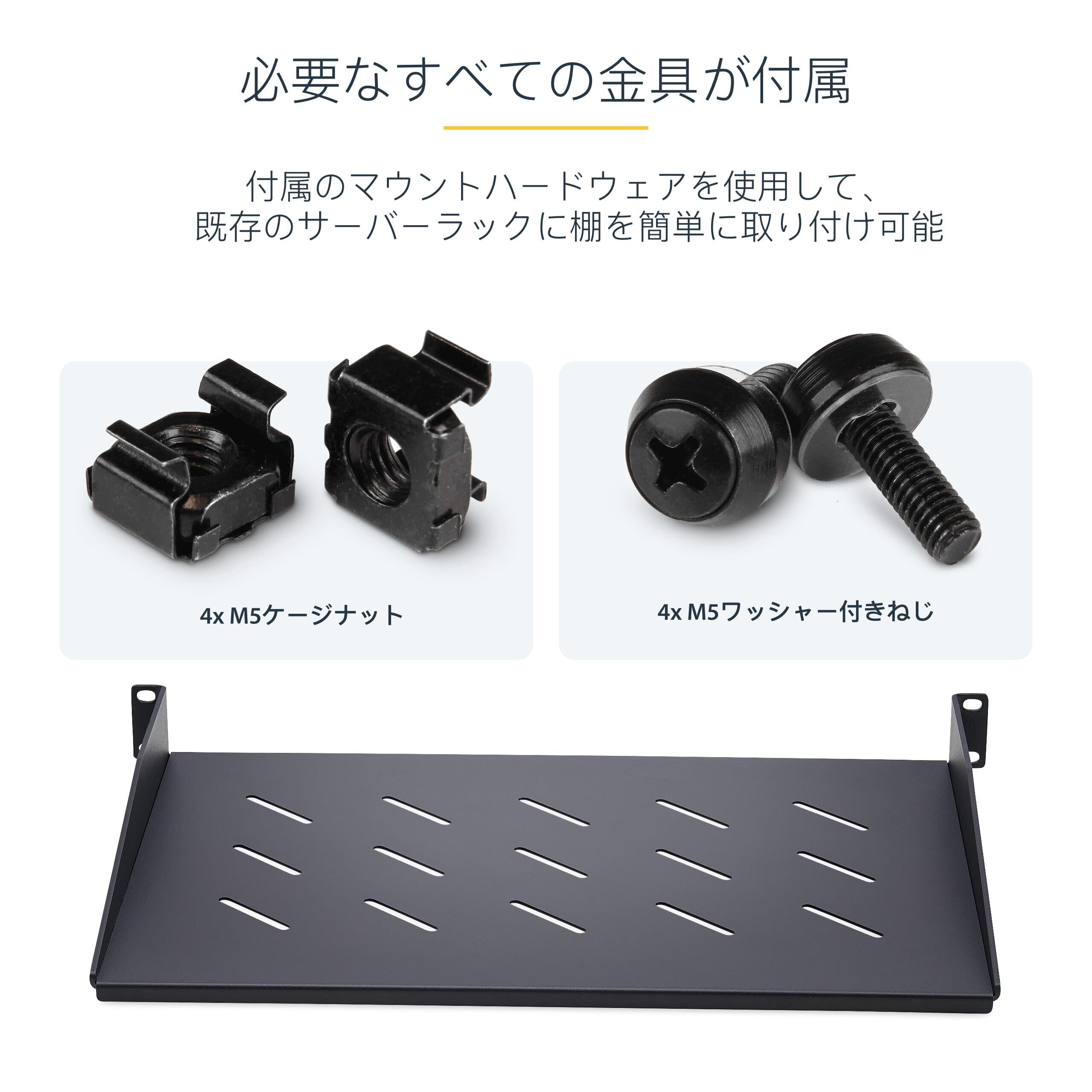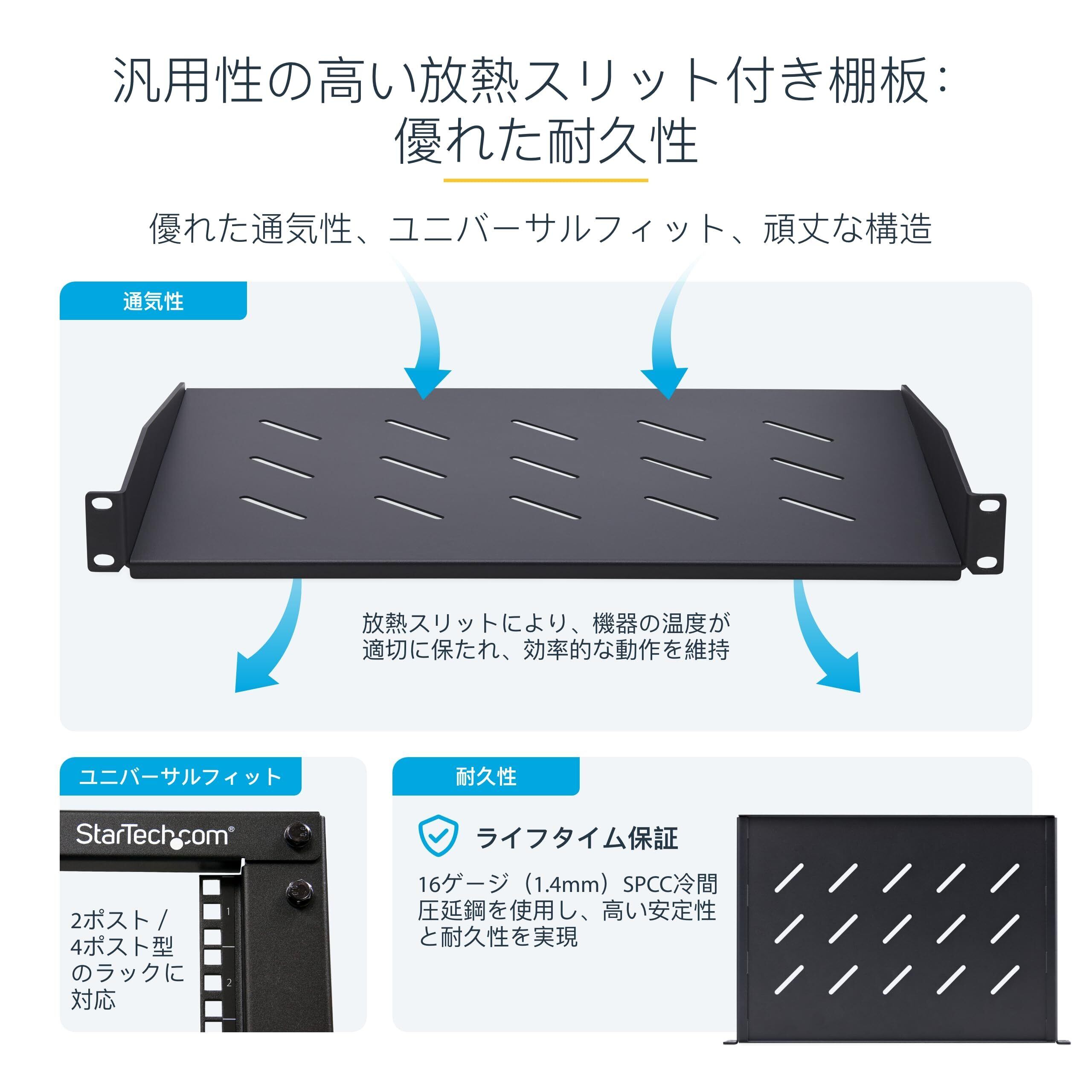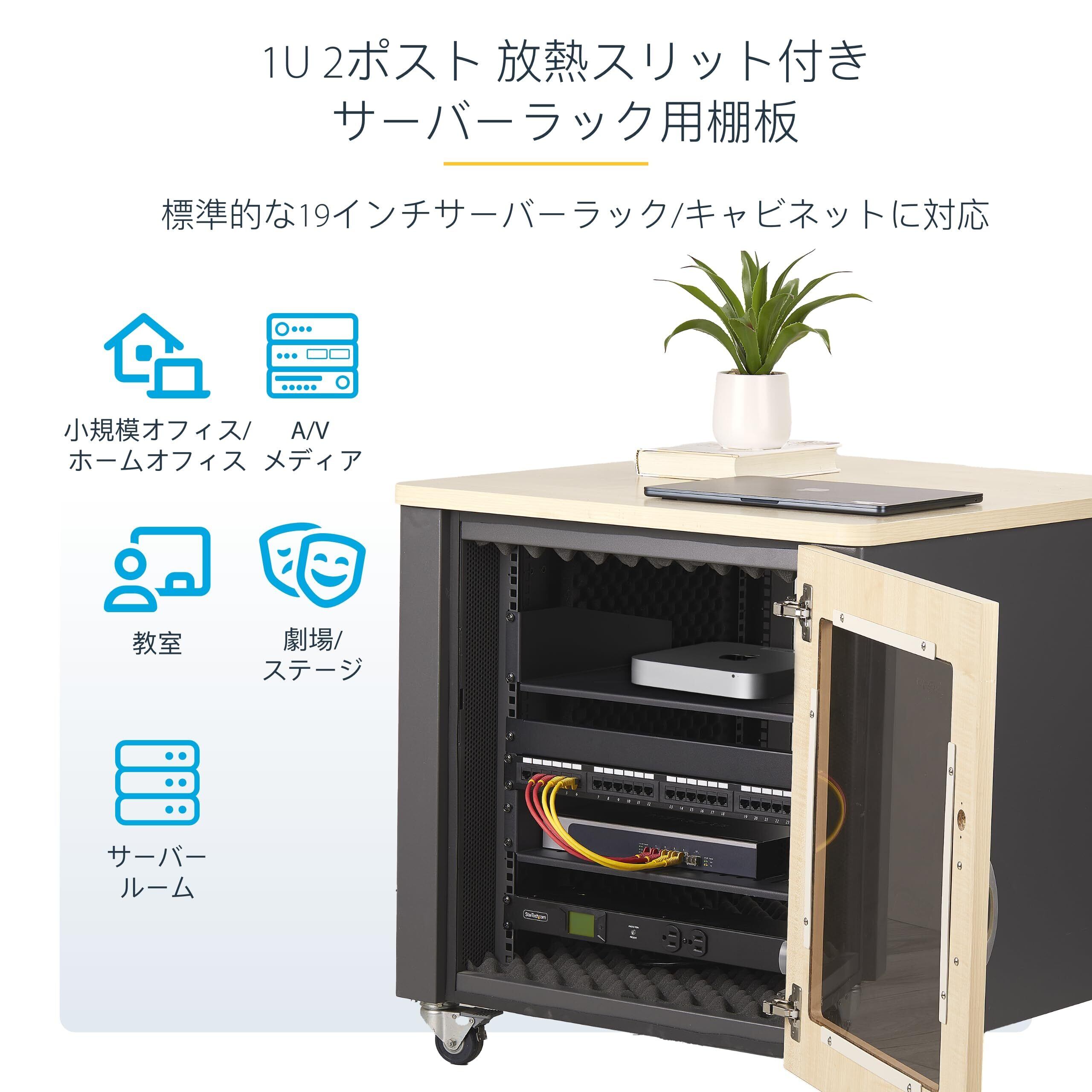 StarTech.com サーバーラック棚板/1U/19インチラック対応/放熱スリット付/奥行31.5cm/耐荷重11.3kg/ラックアクセサリー CABSHELFV1U-12-RACK