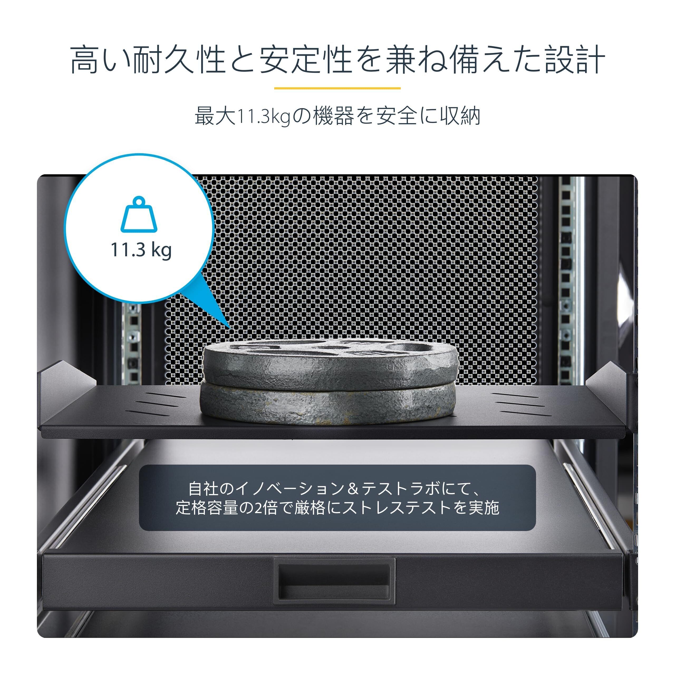 頑丈で高い信頼性:16ゲージSPCC冷間圧延鋼板製で、耐荷重11.3kgのフロント取り付け型サーバーラック棚板。定格容量の2倍の負荷をかけて厳格なストレス試験を実施。安心して使える強度と耐久性を実現