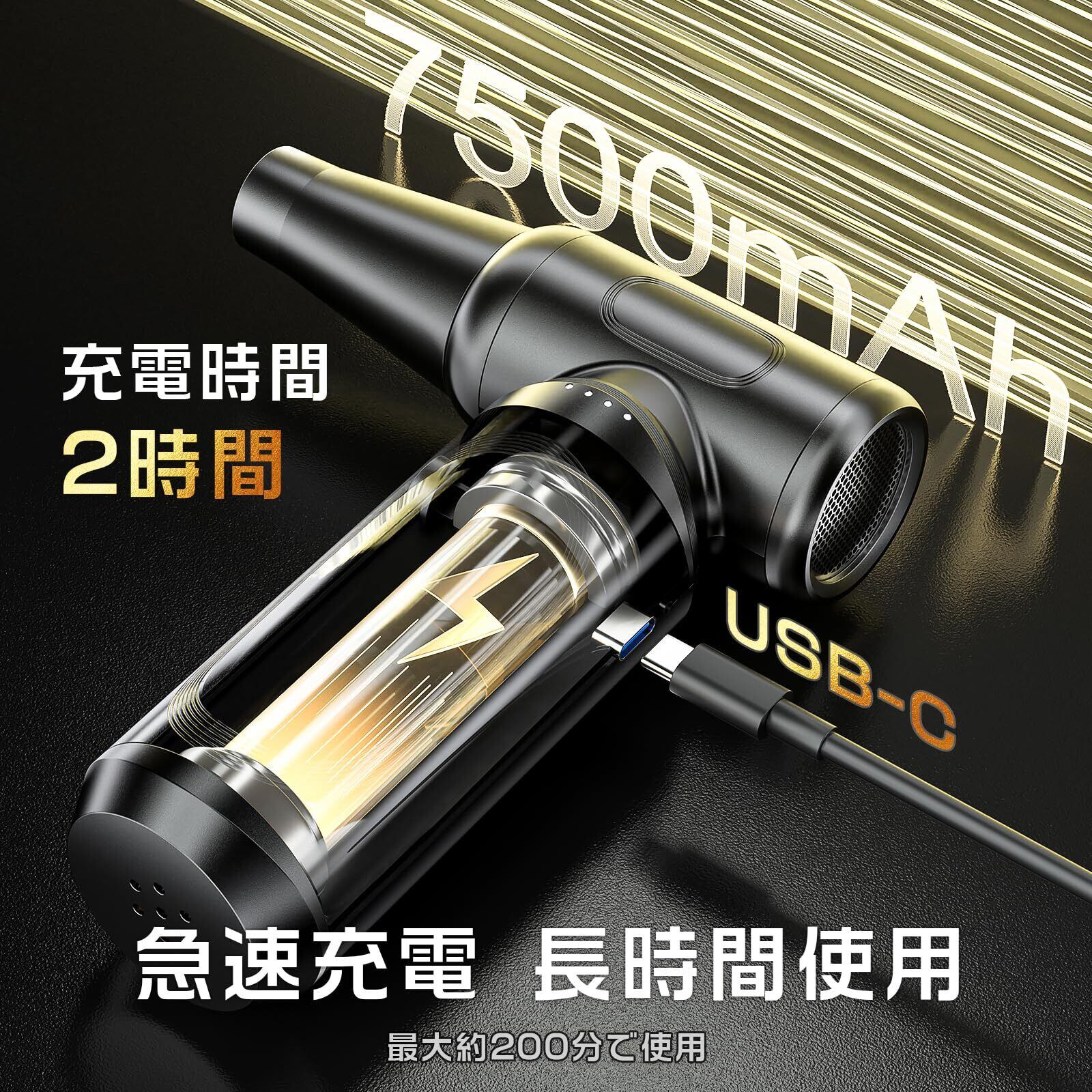エアダスター 充電式 最強ブロワー ブロアー 洗車 150m/sな風速 4段階風量調整 300000RPM 超強力 7500mAh USB-C充電式 ブラシレスモーター 小型 PC掃除 空気入れ コードレス 日本語取扱説明書