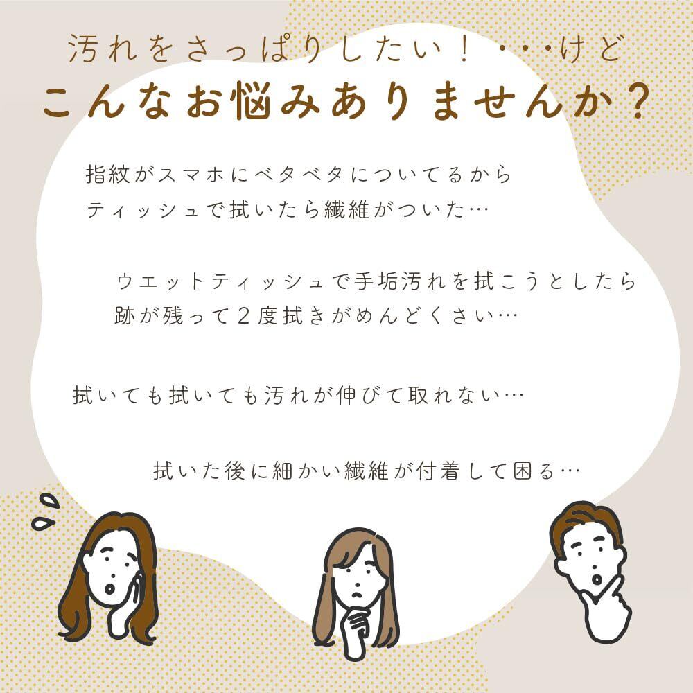 水性・油性の汚れにも強い:日常生活で付着する様々な汚れも、しっかりと落とします。 画面に付着した指紋だけでなく、通話中に付着したファンデーション汚れや、 ガラステーブルについた水滴あとなども逃さずに拭きとります。