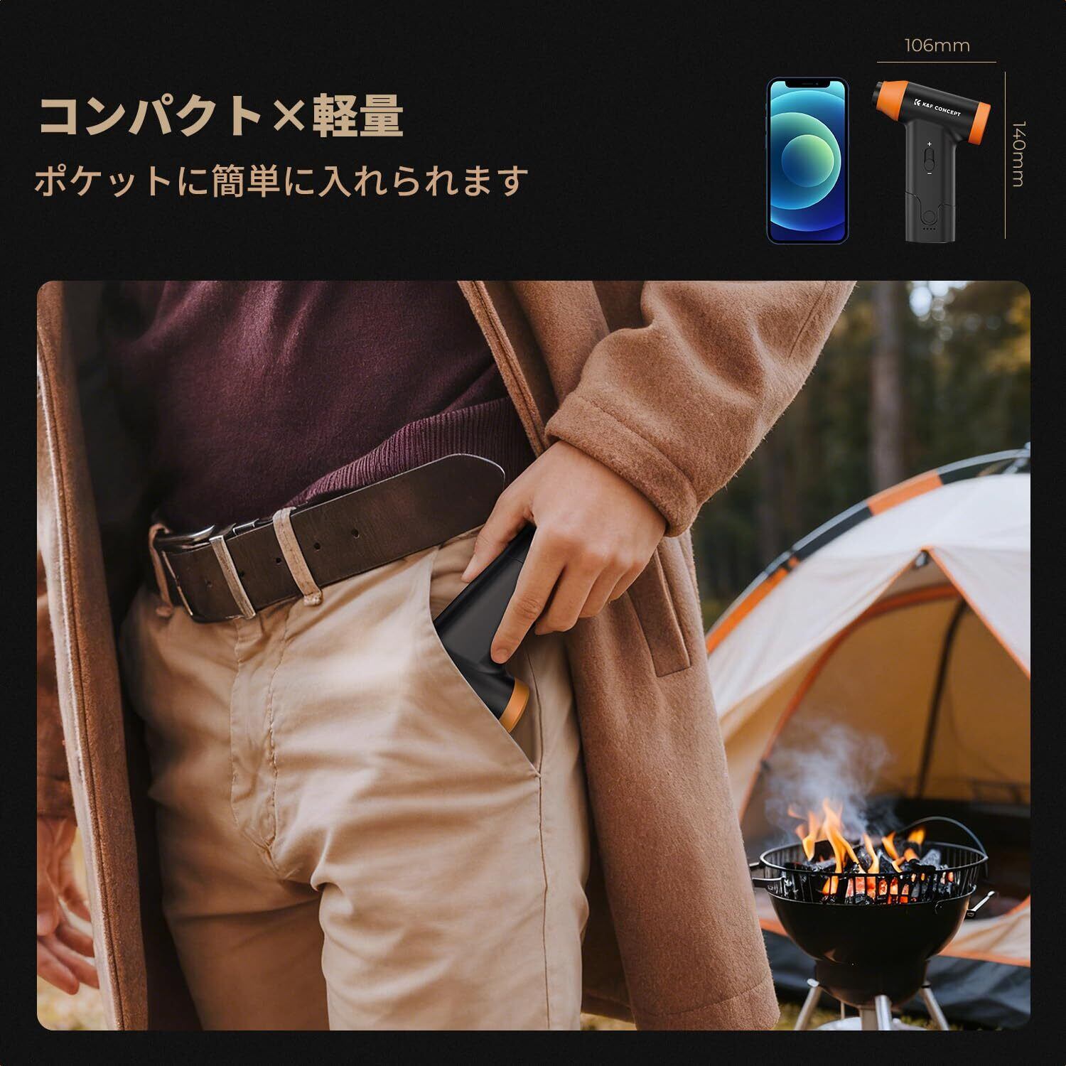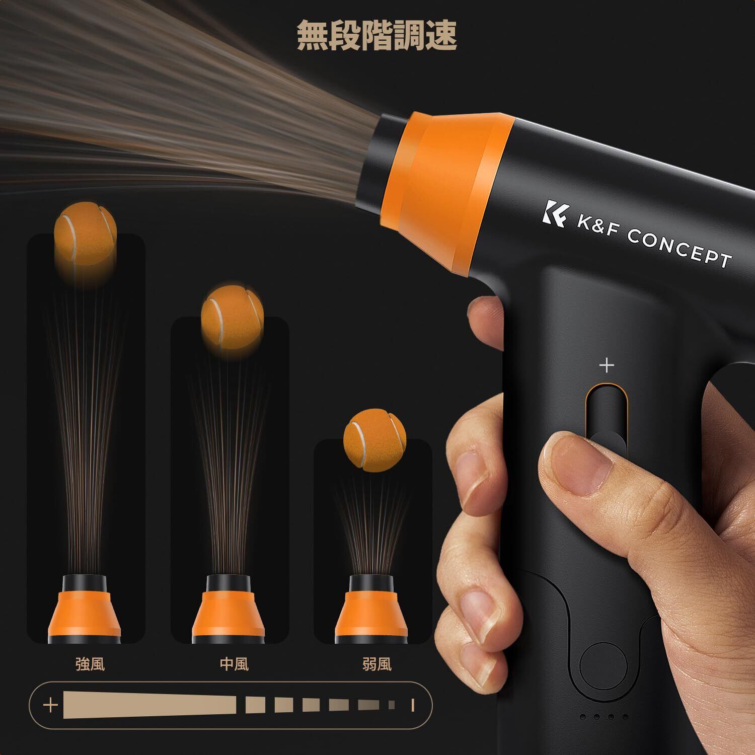 【無段階風量調整・大容量バッテリー】このブロワーは使用場所によってお好みの風量強さがスムーズに調整出来る無段階速度調整モードです。従来の2500mAh容量電池と比べて、K&F CONCEPTのブロワーはバッテリー容量の2倍(5000mAh)以上!フル充電しなら、最大約180分(3時間)で長時間使用できます。強風モードで約12分後にバッテリーが切れます。