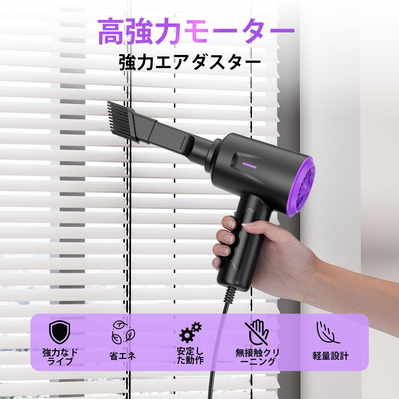 電動エアダスター - エアブロワー - キーボード用多目的圧縮空気ダスター - コンピュータとPC - 163g強力なモーター(紫)