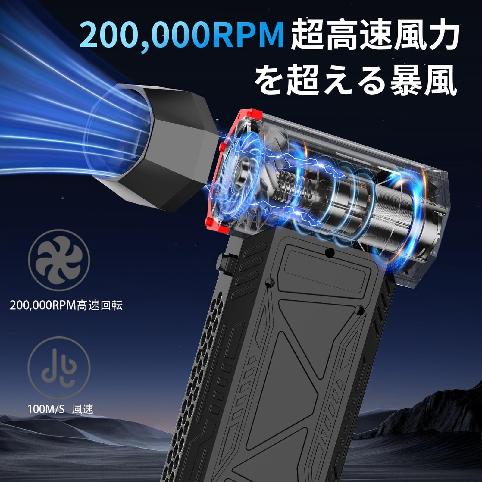 エアダスター 電動エアダスター 超強力 小型 ブロワー 200,000RPM高速回転 最大風速 100m/s 5段階風量調整 20,000mAh大容量バッテリー LCDディスプレイ搭 Type-C充電式 過熱保護 PC掃除/キーボード/家具/車内/エアコン/洗車用 収納ボックス付き 日本語取扱説明書付き