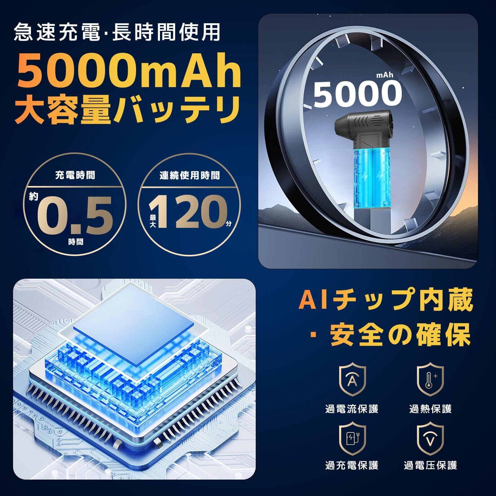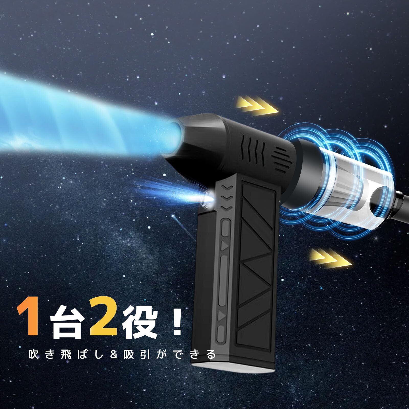 エアダスター 電動エアダスター ブロワー 強力 200000RMP高速回転 85m/sを超える圧倒的な風速 2in1多機能 5000mah大容量バッテリー ハンディクリーナー 4時間使用 小型 コードレス USB Type-C充電式 4段階風量調整 充電式 軽量 多用途(PC 掃除/キーボード/車内/エアコン/洗車用等) 日本語取扱説明書付
