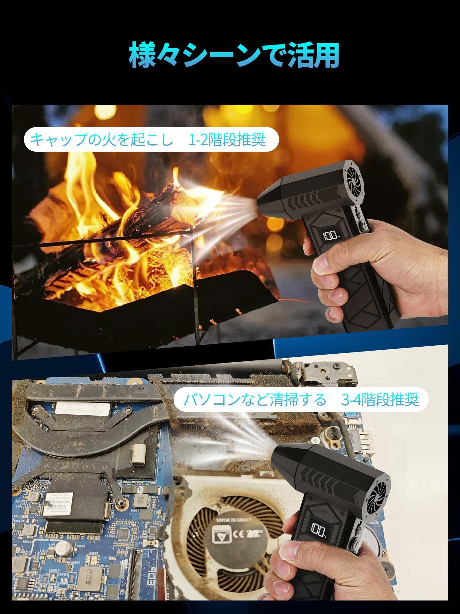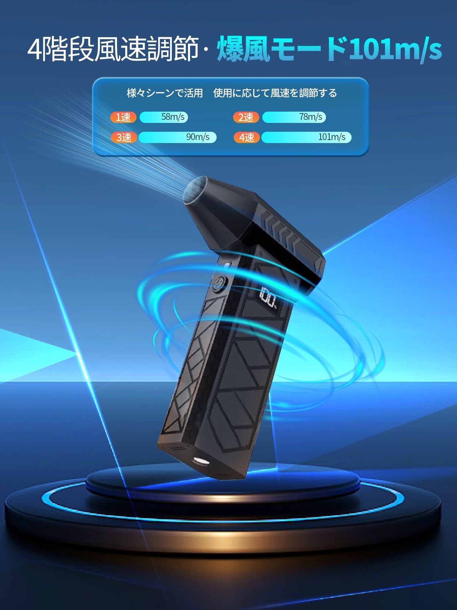 【圧倒的な風速101m/s】yuyuesmart 電動エアダスター 130,000RPMの高速回転 4段階風量調整 10,000mAh大容量バッテリー 2つのLEDライト コードレス コンパクトで強力 軽量 過熱保護 ノズルと収納バッグ付き 清掃ブラシ9枚 日本語取扱説明書付き 多用途 PC、キーボード、車内、エアコン、洗車など ブラック