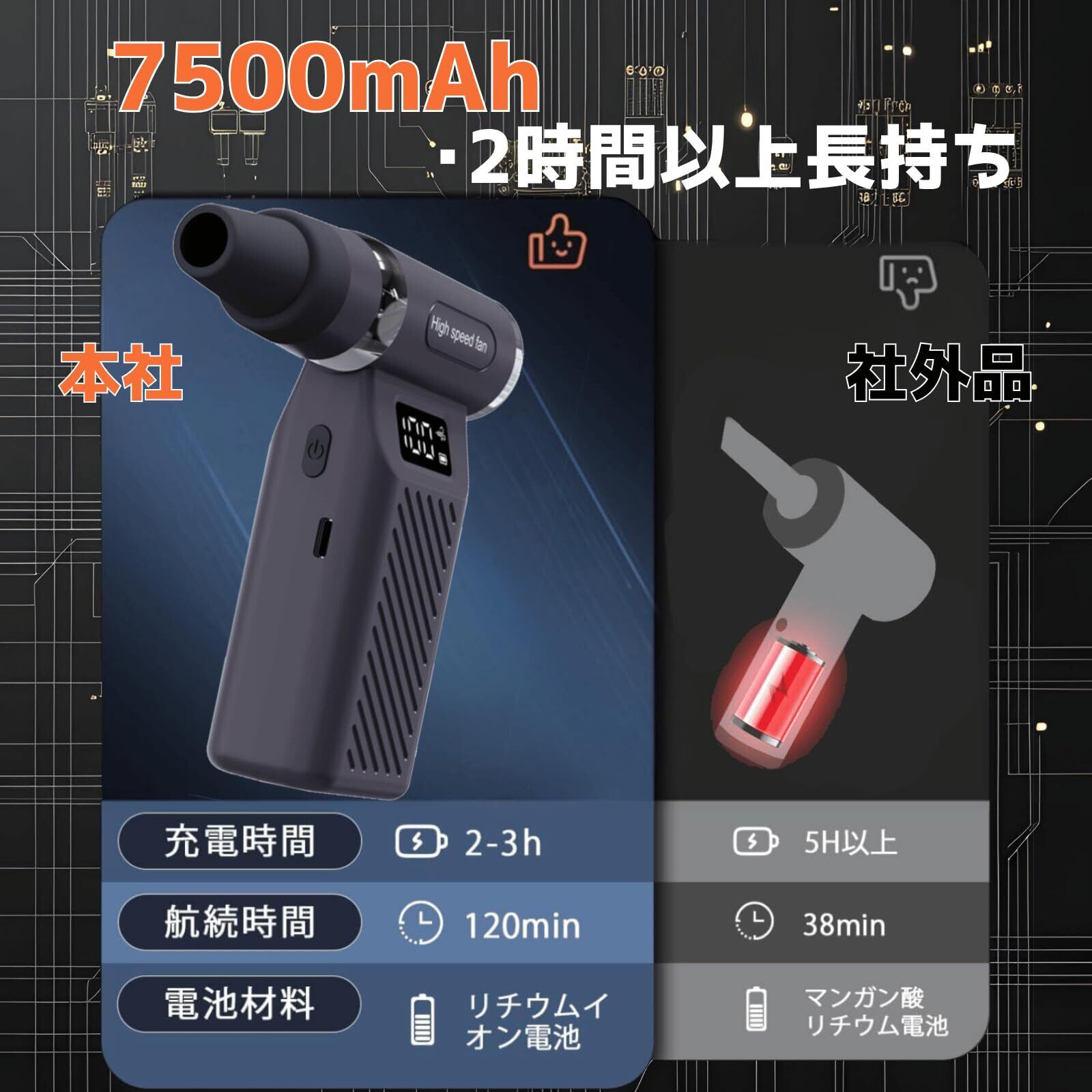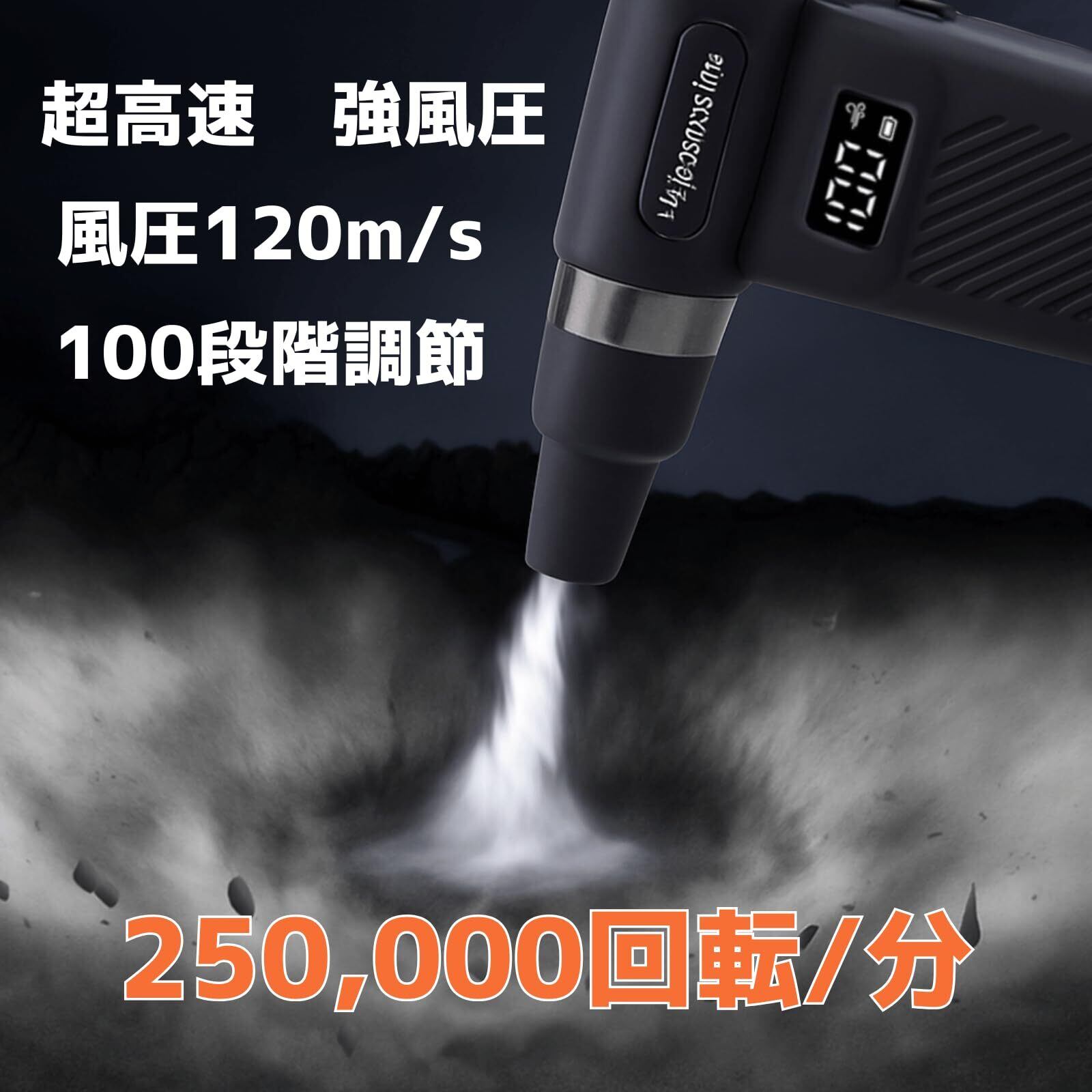 エアダスター 充電式 電動エアダスター エアダスター 強力 ダストブロワー ブロワー 洗車 100段階風量調整 超強力 最大風速120m/s 7500mAh大容量バッテリー PC掃除/空気入れ/キーボード/エアコン/洗車用 TypeC急速充電 日本語取扱説明書(ブラック)