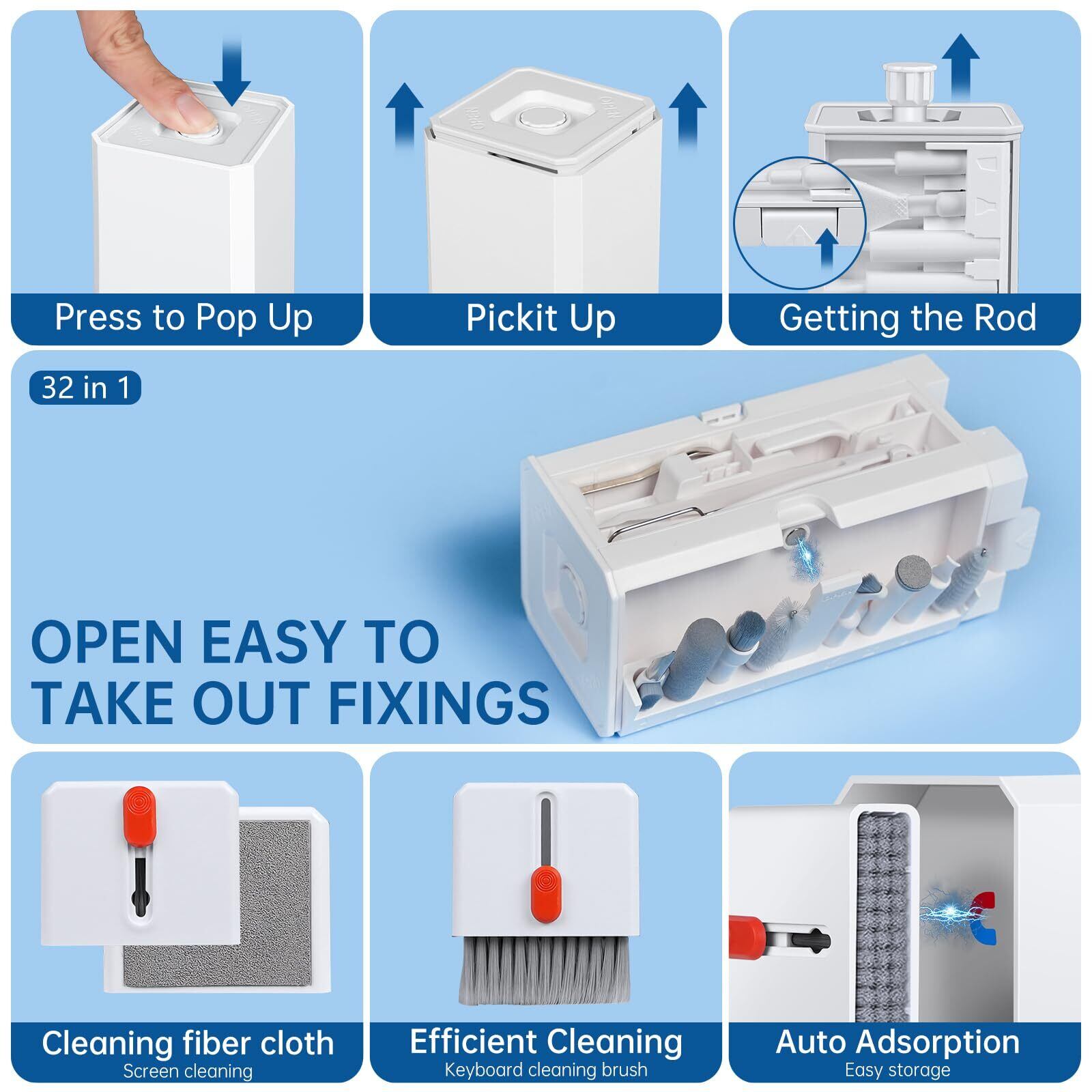 Inesore for 32 in 1多機能クリーニングキット,携帯電話クリーニングキット、充電口クリーナー、タッチペン、SIMカードツール、キーボードブラシ、スピーカーブラシ、iPhone、AirPods、ノートパソコン、iPad、キーボード、MacBook、イヤホン、カメラレンズ付き電子クリーニングキット(ホワイト)