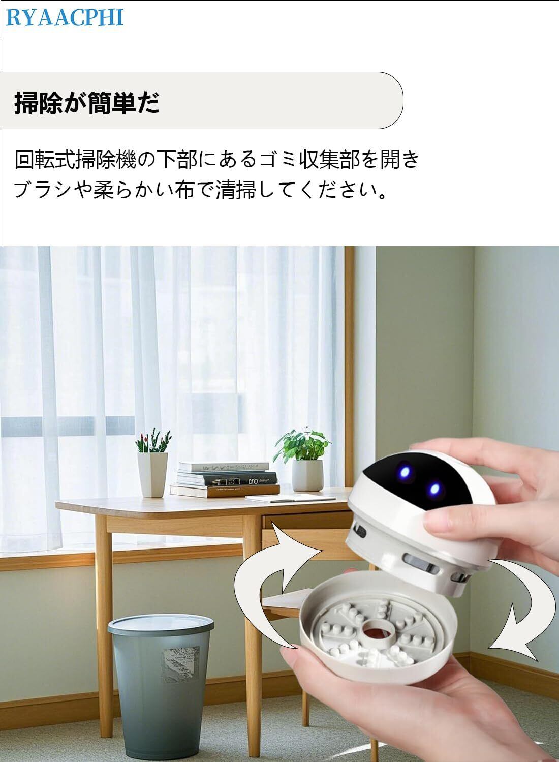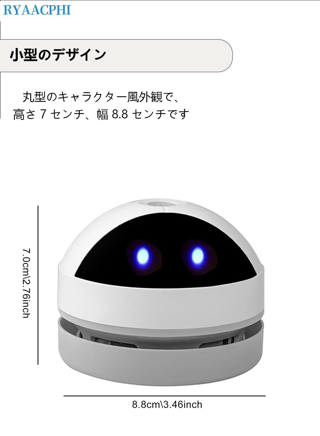 デスク掃除機ミニ、消しゴムカスクリーナー 、卓上クリーナー、コードレス&ポータブル、ダスト&パンくずスイーパー、かわいい漫画ロボット、USB、デスクトップ/テーブル/キーボード/ソファなどのほこり/髪の毛/ペットの毛/パンくずを簡単に取り除く、軽量設計