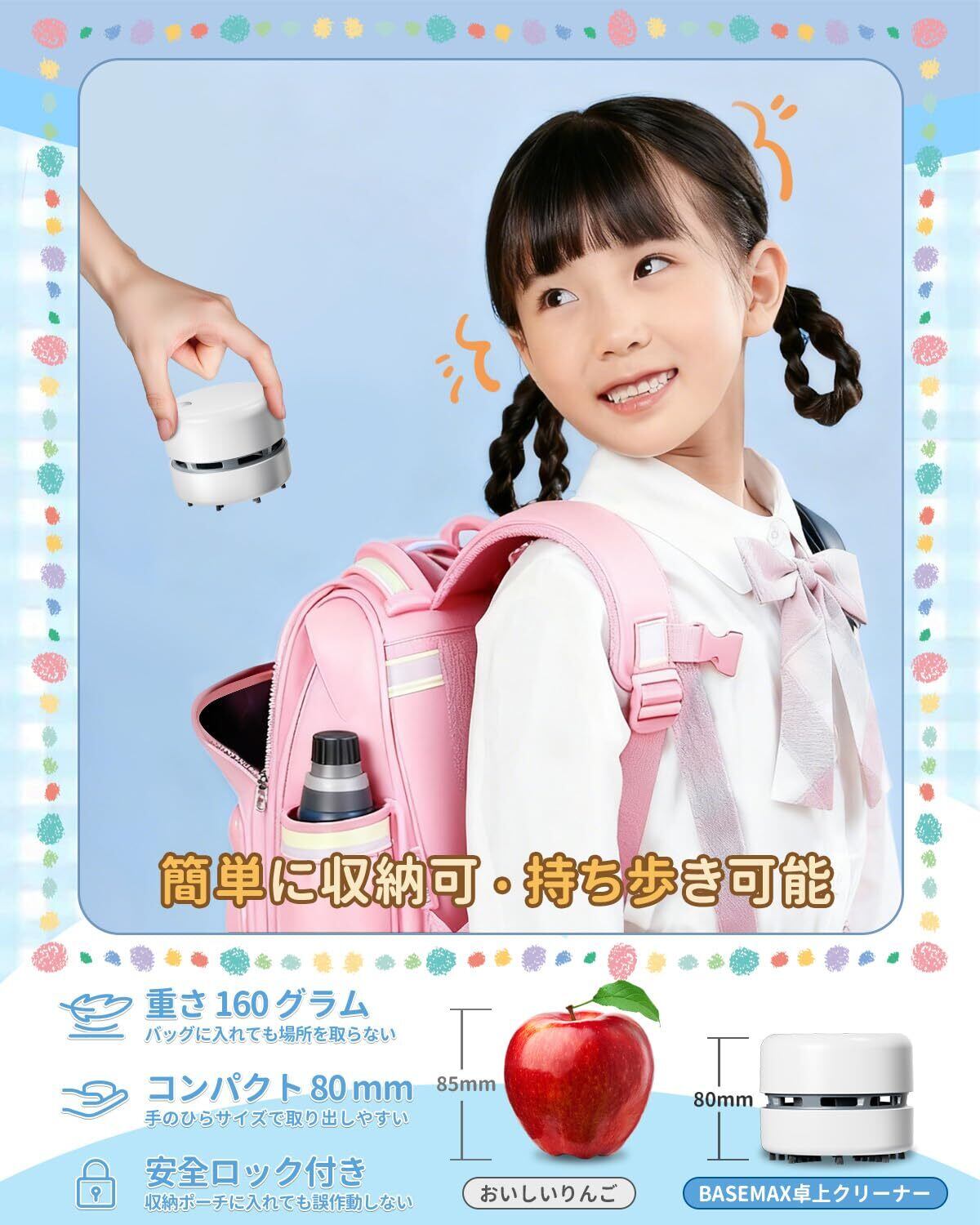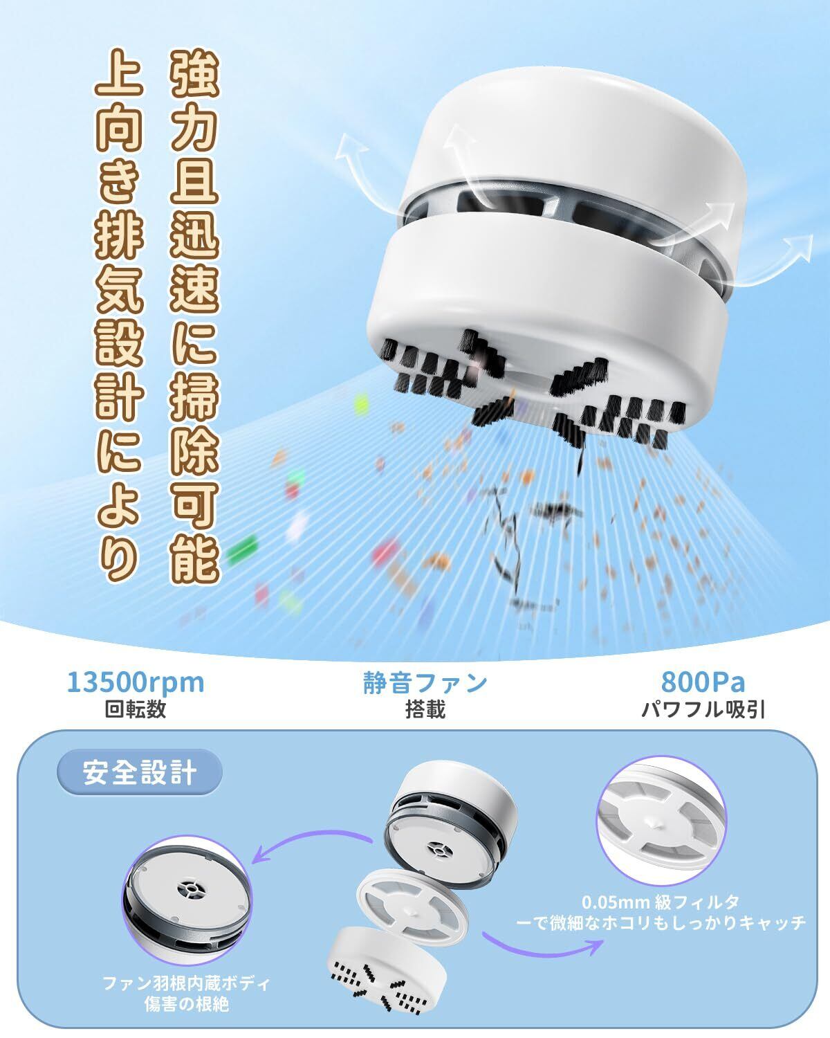 【2025新登場】卓上クリーナー 消しカスクリーナー 13500RPM 強力吸引 軽量 コンパクト 乾電池式 消しゴムカスクリーナー 卓上掃除機 安全設計 子供 小学生/家庭/オフィス用 ホワイト BASEMAX