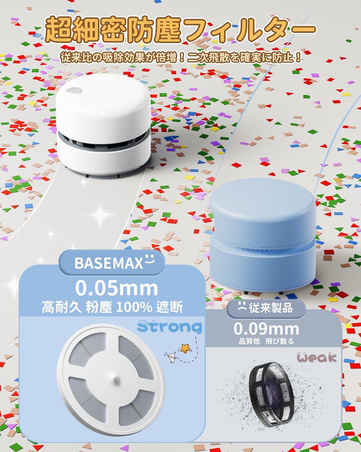 ✨✨【ご一緒に、より良い暮らしへ】Basemax卓上クリーナーは、日々の生活の中にある「ささやかな不便」を取り除き、「ちいさな幸せ」をお届けすることに努めています。学習、オフィス、趣味のDIYを問わず、お客様が身の回りの空間を楽に、美しく保つお手伝いができればと願っています。卓越した機能性とシンプルで洗練されたデザインで、私たちはお客様の生活に「ちいさな革命」を起こしたいと思います。