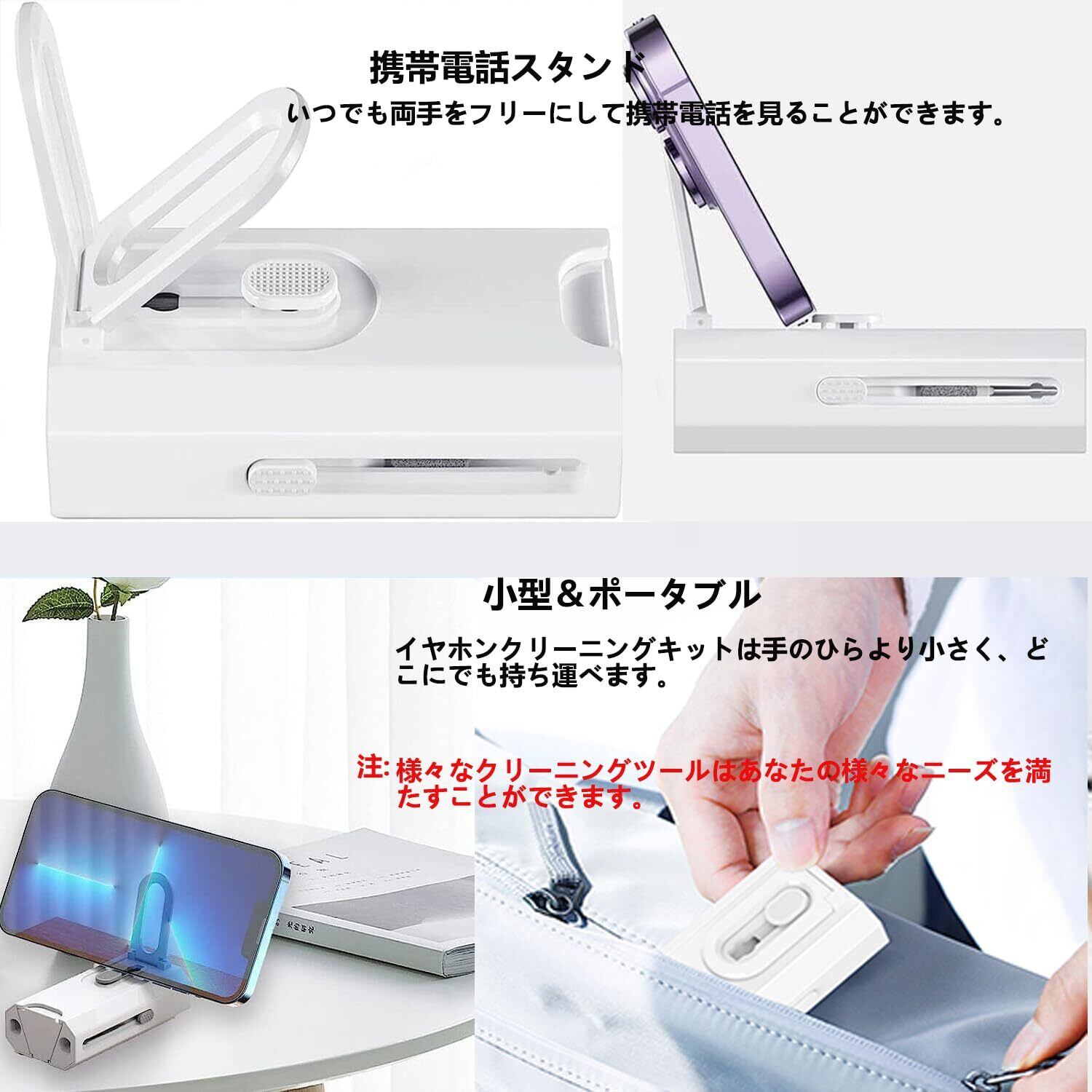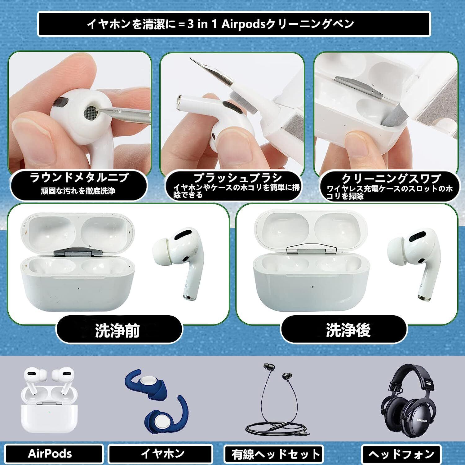 【幅広い用途】イヤホン 掃除キットは、AirPods / Air Pods Pro / Freebudsなどすべてのワイヤレスイヤホン、airpods充電器キット、airpodsケース、電話スクリーン、カメラレンズ、コンピューター、ヘッドフォン、イヤフォン、携帯電話、キーボード、macbook、充電ポートなどのデジタル製品の掃除に適用します。すべての有線イヤホン、ワイヤレスイヤホン、bluetoothイヤホン、 充電ケース、スマホ、タブレット、コンピューター、カメラなど製品に適合します。