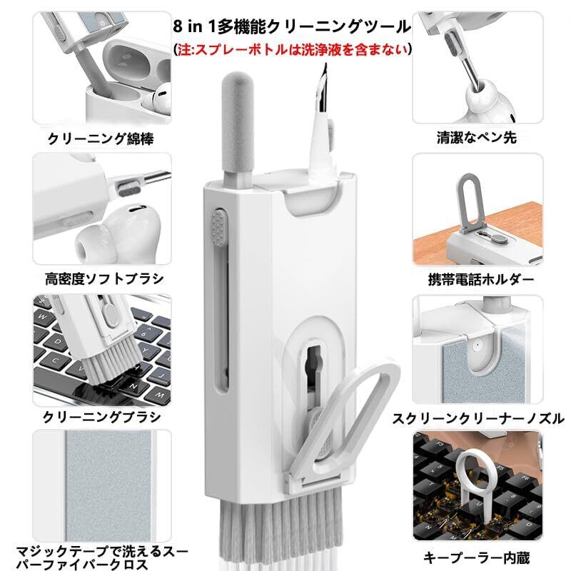 キーボード 掃除 イヤホンクリーナー Airpods 1/2/3/Pro用 掃除 キット【 8 in 1多機能クリーニングツール】 指紋除去 汚れ落とし ほこりの除去 軽量で持ち運びに便利 イヤホン掃除道具 携帯電話/iPad/タブレット/AirPods/ヘッドホン/充電ボックスクリーニング/カメラなど対応 ホワイト