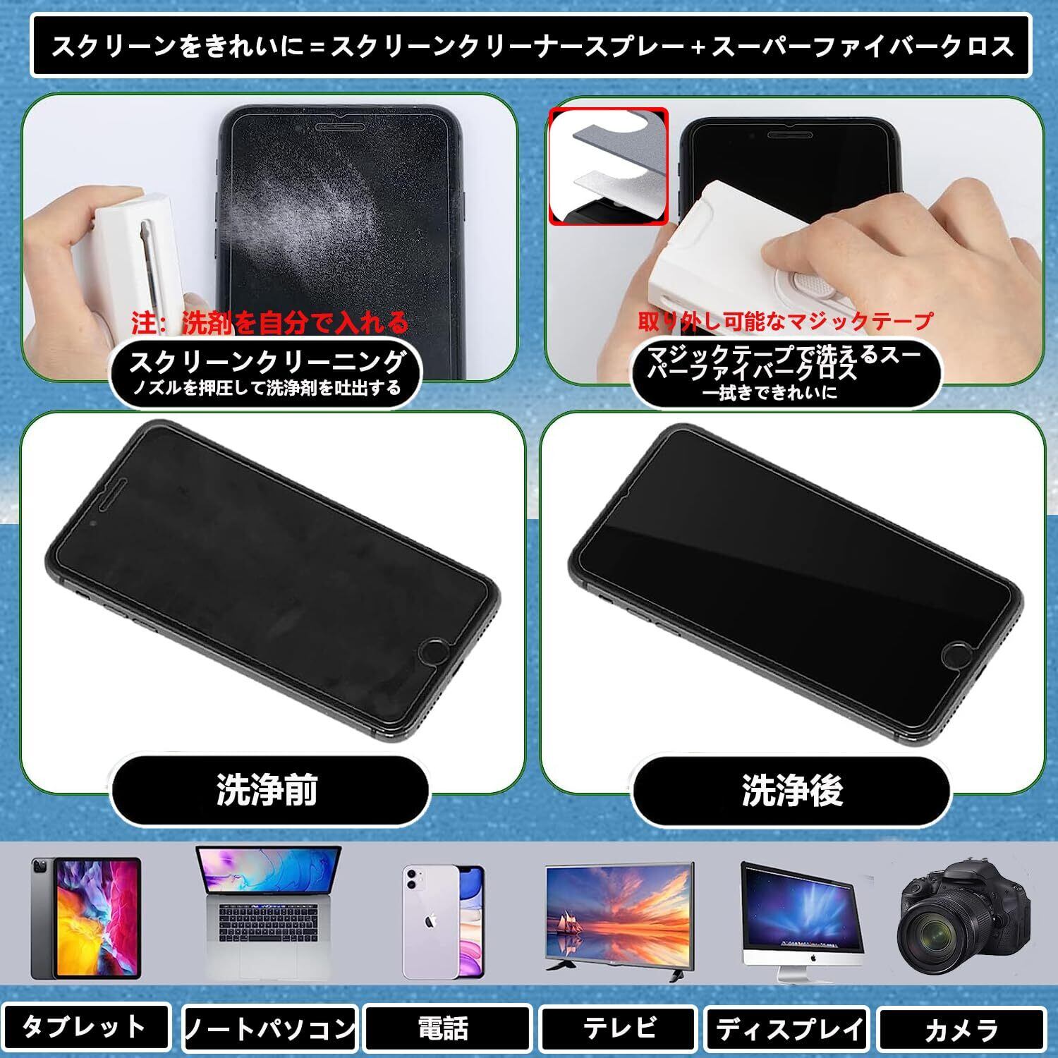 【スクリーンクリーナーツール】製品にスプレーを内蔵しており、洗剤を入れると、イヤホンカバー、充電ケースカバー、スマホ▪タブレットのスクリーンや液晶ディスプレイを清潔することができます。運輸や保存等原因で本製品が洗剤を付属していません。大変お手数ですが、入れることが必要です。何卒ご了承くださいますようお願い申し上げます。
