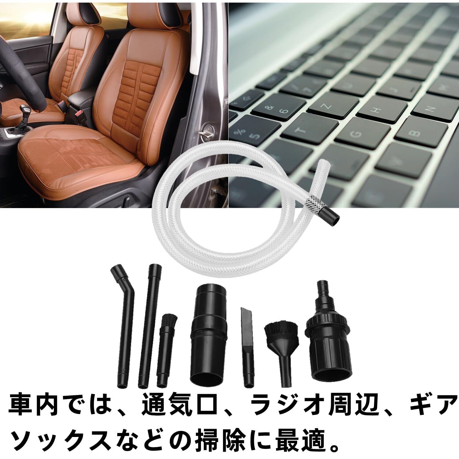 【車の掃除】普通の掃除機では届かないような場所にも届きます。 車内では、通気口、ラジオ周辺、ギアソックスなどの掃除に最適。