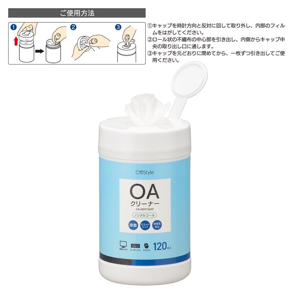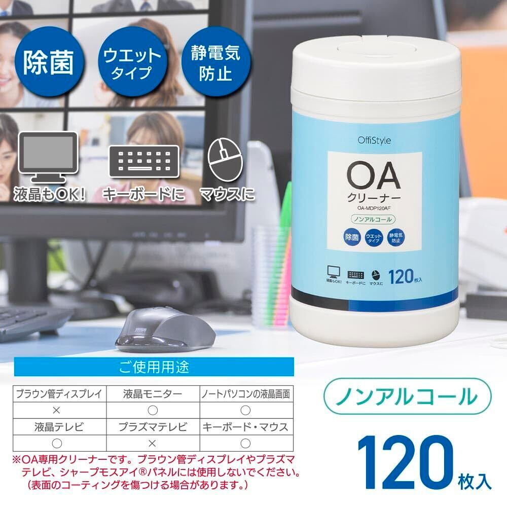 オーム電機OffiStyle 液晶画面クリーナー 除菌 ノンアルコール パソコン ウェットティッシュタイプ PC テレビ ディスプレイ モニター アルコールフリーOAクリーナー 120枚入り OA-MDP120AF 01-3156 OHM