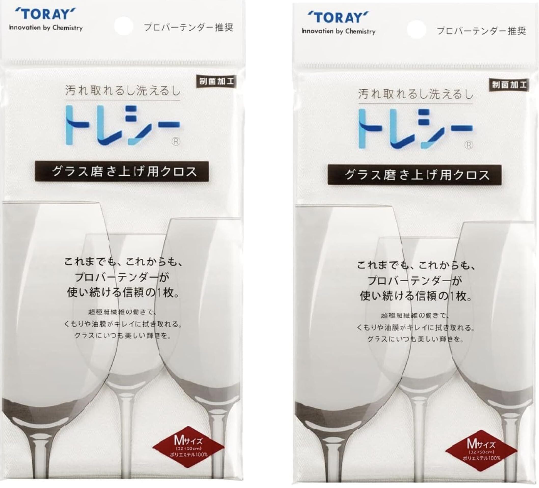 【 トレシー 2個セット M サイズ 】東レ グラス拭き バーテンダー 推奨 ポリエステル ワイングラス クロス 食器拭き ふきん プロ向き Mサイズ