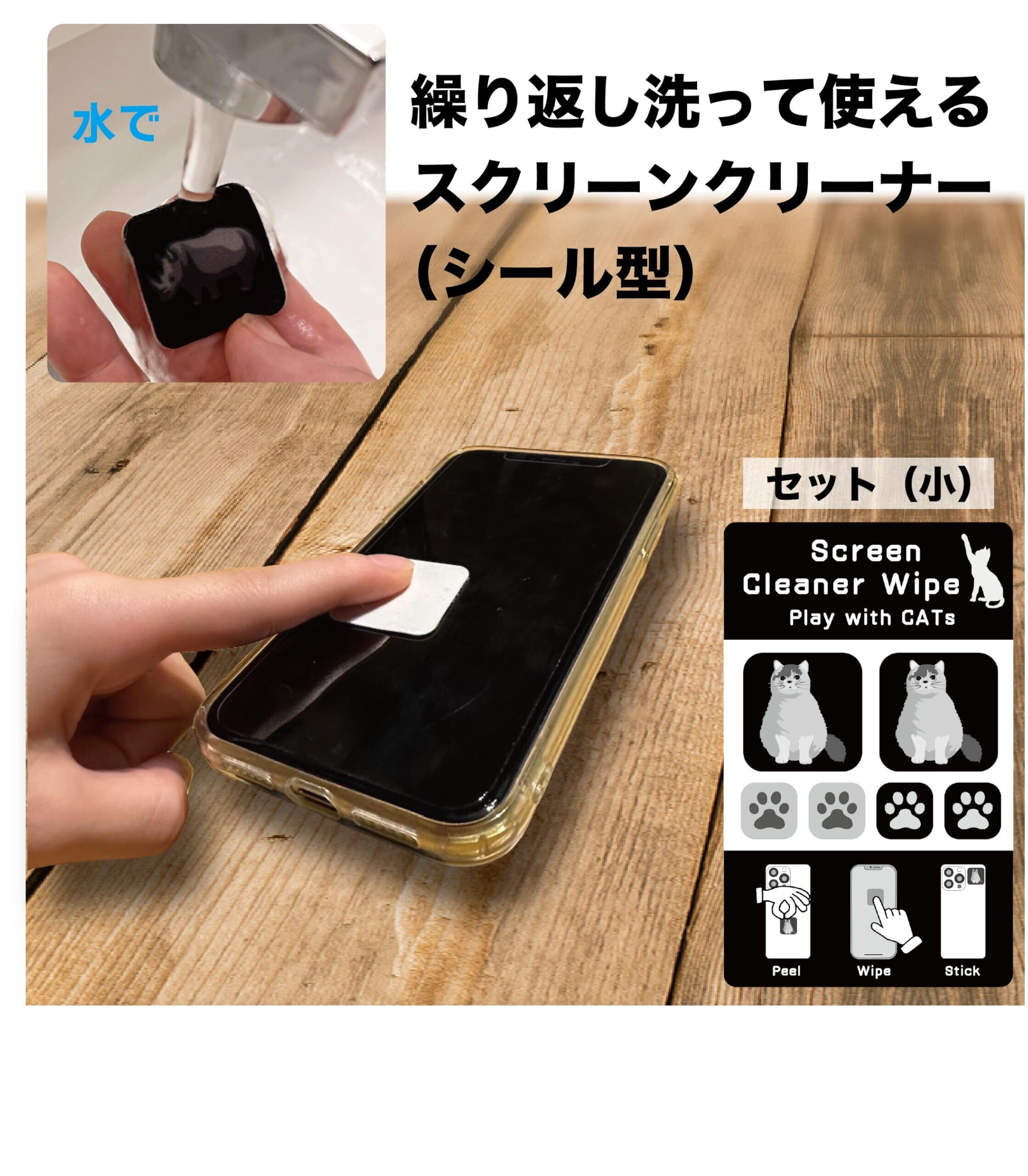 液晶スクリーンクリーナー 【 スマホ、モニター、タブレット、メガネなどに(繰り返し使えるシールタイプ)】 (S CAT)
