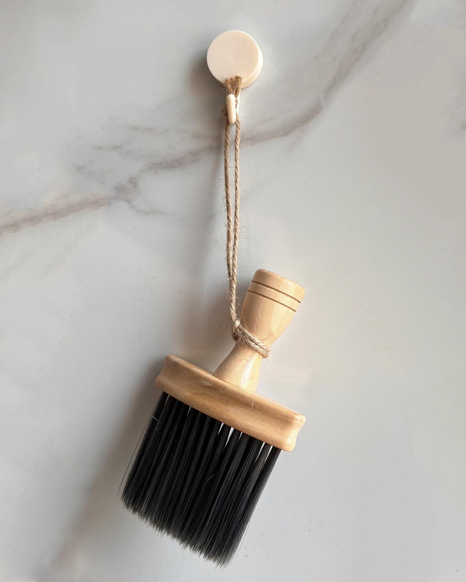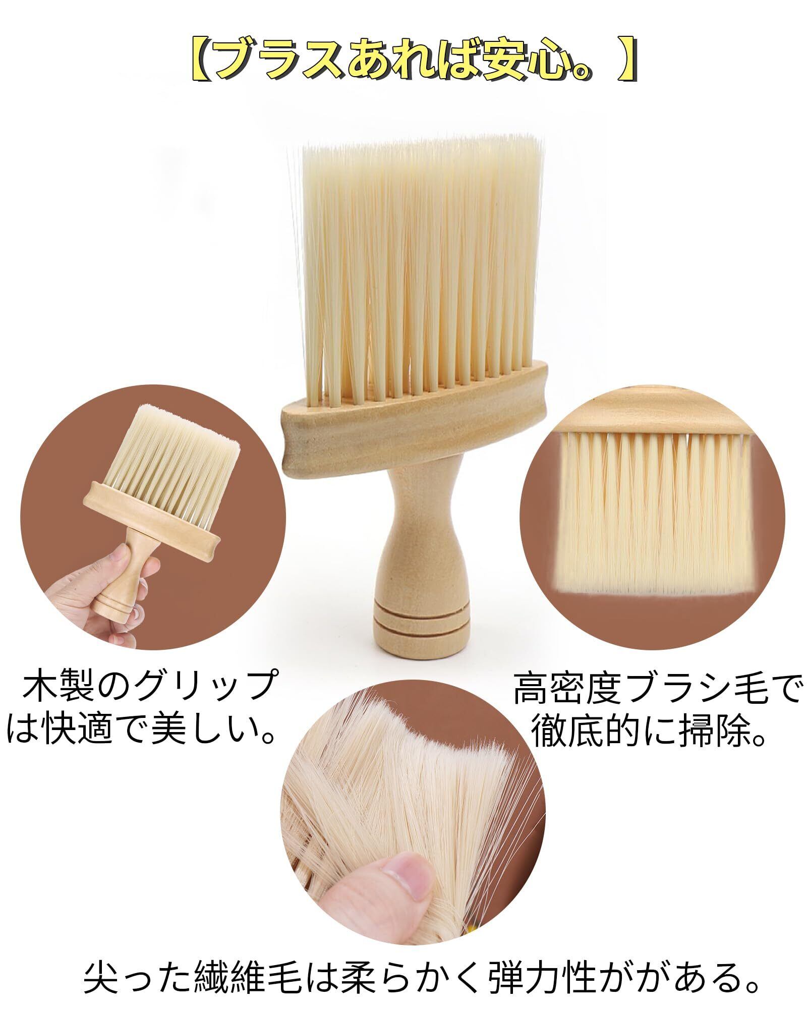 【静電防止ブラシ】木製グリップ+化学繊維ブラシ毛(付属のプラスチックフック2個、ひも2本)。木製掃除用ブラシは使用後水で洗え、清潔に保ちやすい。