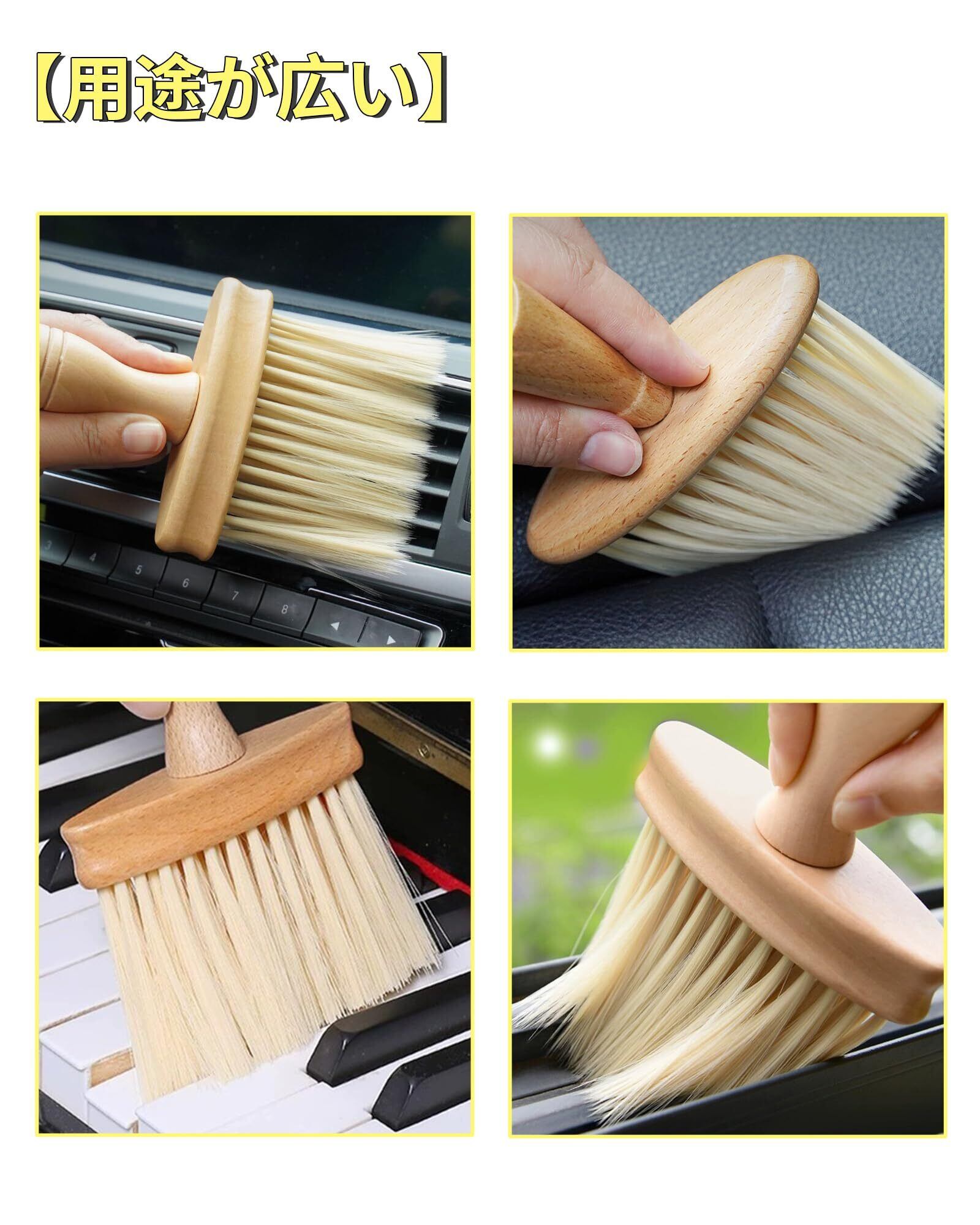 キーボードクリーナー 木製 コンピューター用掃除ブラシ 長くて繊細な毛 多機能除塵ブラシ 溝と隙間に死角なしのディープクリーニングブラシ2個セット(黄色+灰色)