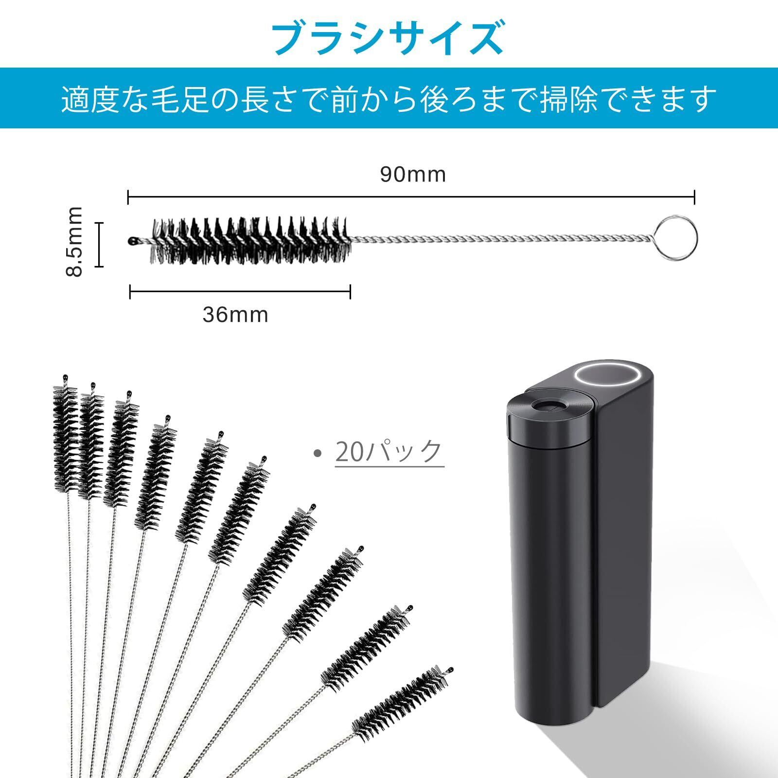 【セット内容】パッケージには長さ約90mmのブラシが20本入っており、ブラシ部分の長さは約36mmです。 便利な収納ボックスが付いているので、いつでもどこでも徹底した掃除が可能です。