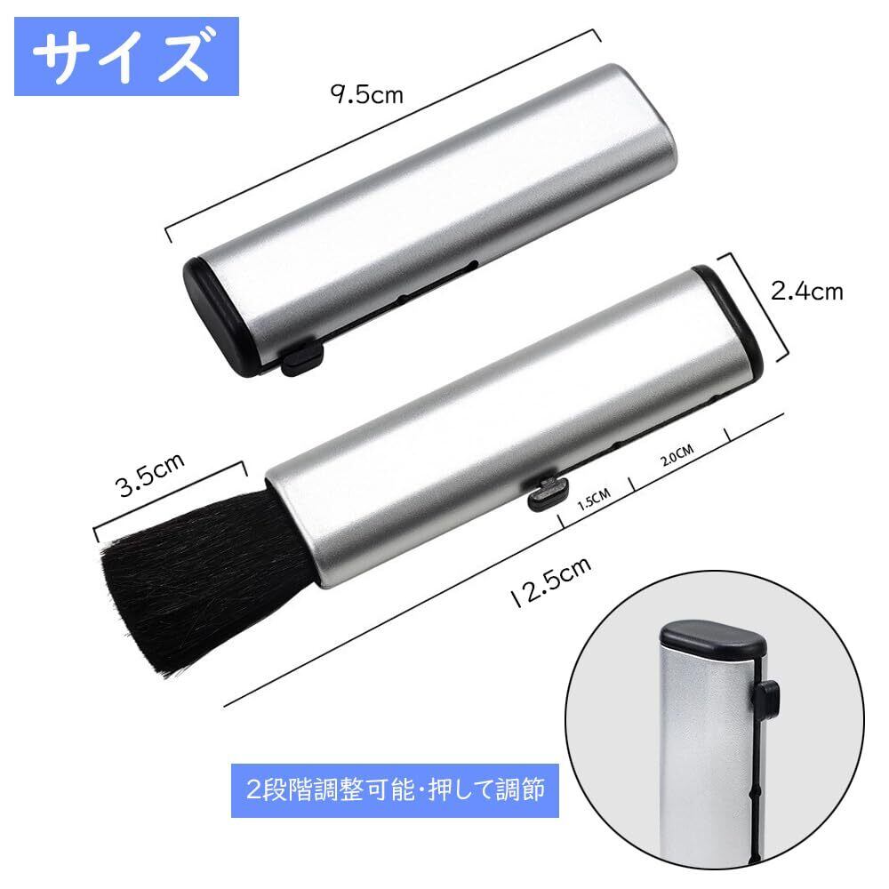 【柔らかい毛ブラシ】【サイズ】12.5cm*3.5cm。柔らかいブラシを採用しており、デリケートなキーボードやカメラレンズ、電子機器の表面を傷つけずに、細かい隙間のほこりも徹底的に除去できます。