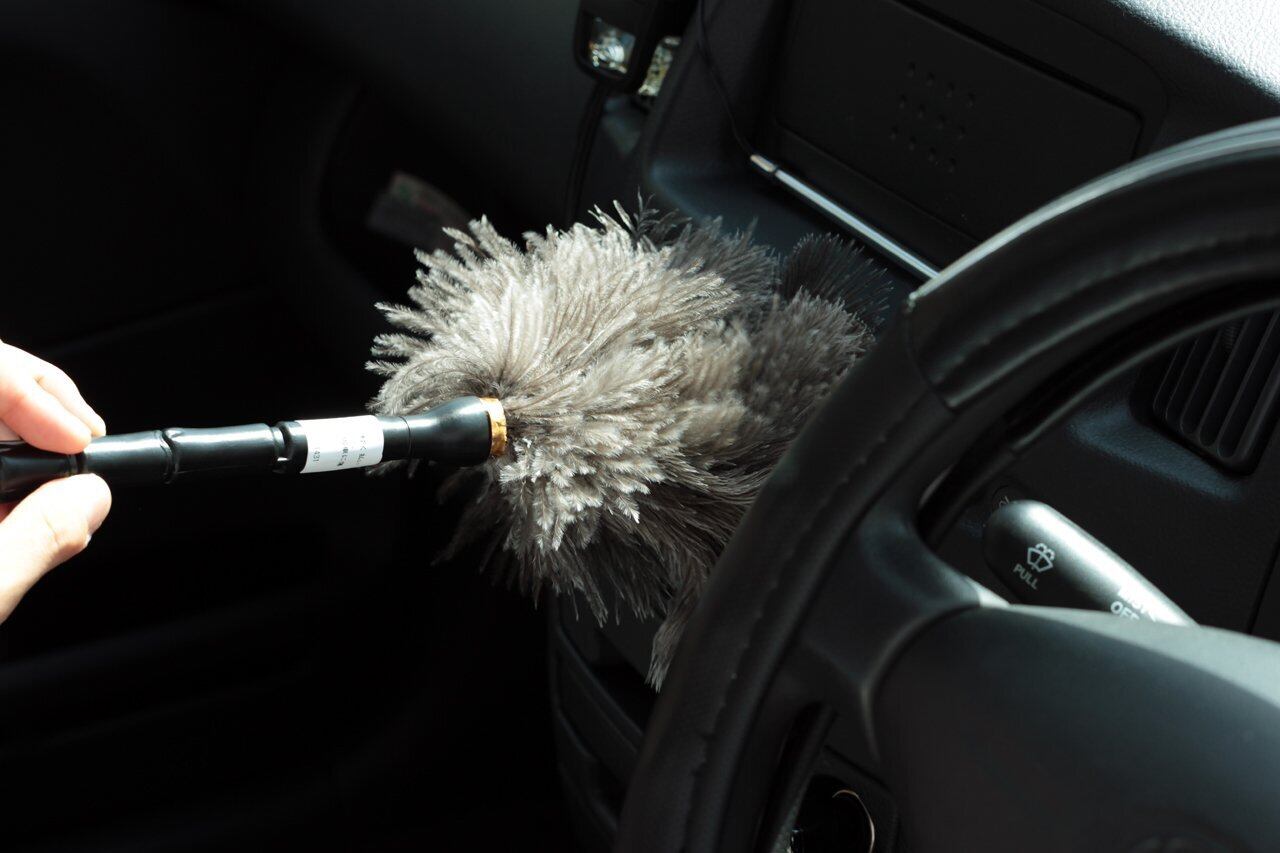 ESCI 【日本製】ダッシュボードやデスク周りのホコリ取りに! オーストリッチ手作りミニ毛ばたき M25