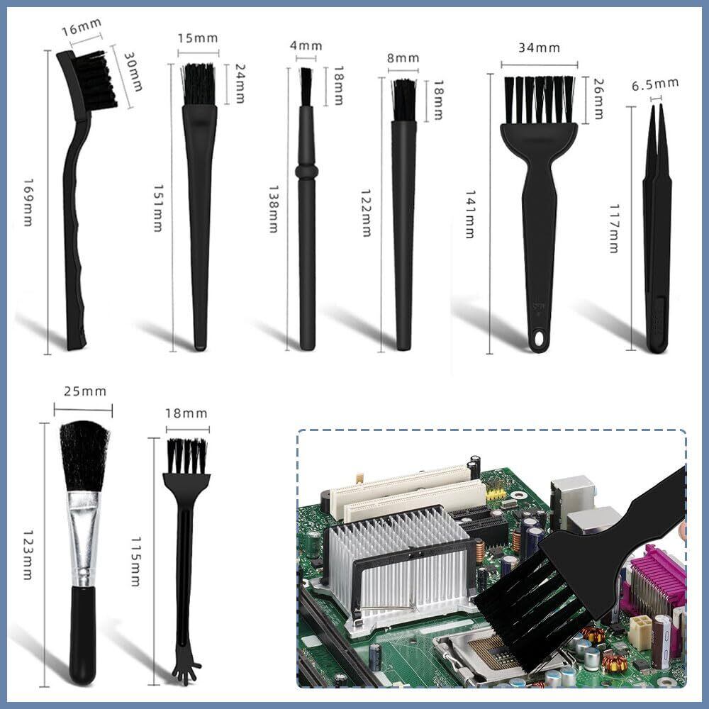 超極細先端・湾曲型・フラット型・回転式など用途別の8本セット!キーボードのキー間、ファンの羽根裏、基板のコンデンサ隙間、USBポートの奥まで、あらゆる形状の死角に潜む頑固なほこりを一網打尽にします。