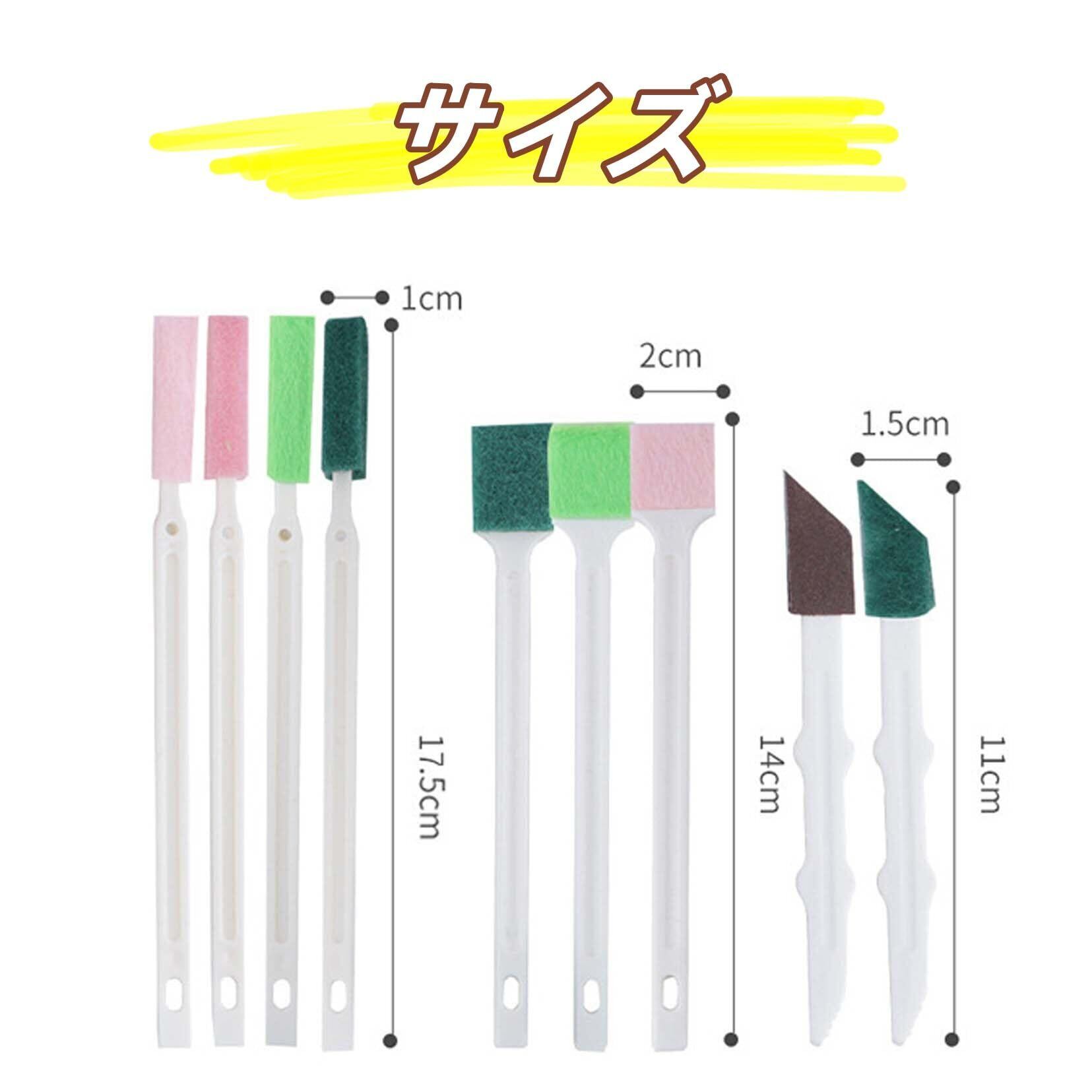 【多種類のブラシヘッドデザイン】絨布タイプ、不織布タイプ、不織布広幅タイプ、サンドペーパータイプなど、さまざまなブラシヘッドが揃っています。異なる清掃ニーズに対応し、カップの縁、窓枠の隙間、壁の隅、キャビネットの隙間など、手が届きにくい場所を簡単に清掃できます。