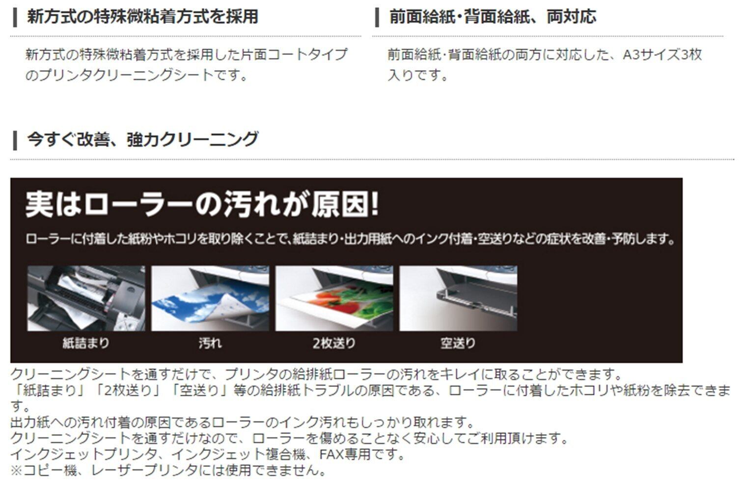 新方式の特殊微粘着方式を採用した片面コートタイプのプリンタクリーニングシートです。