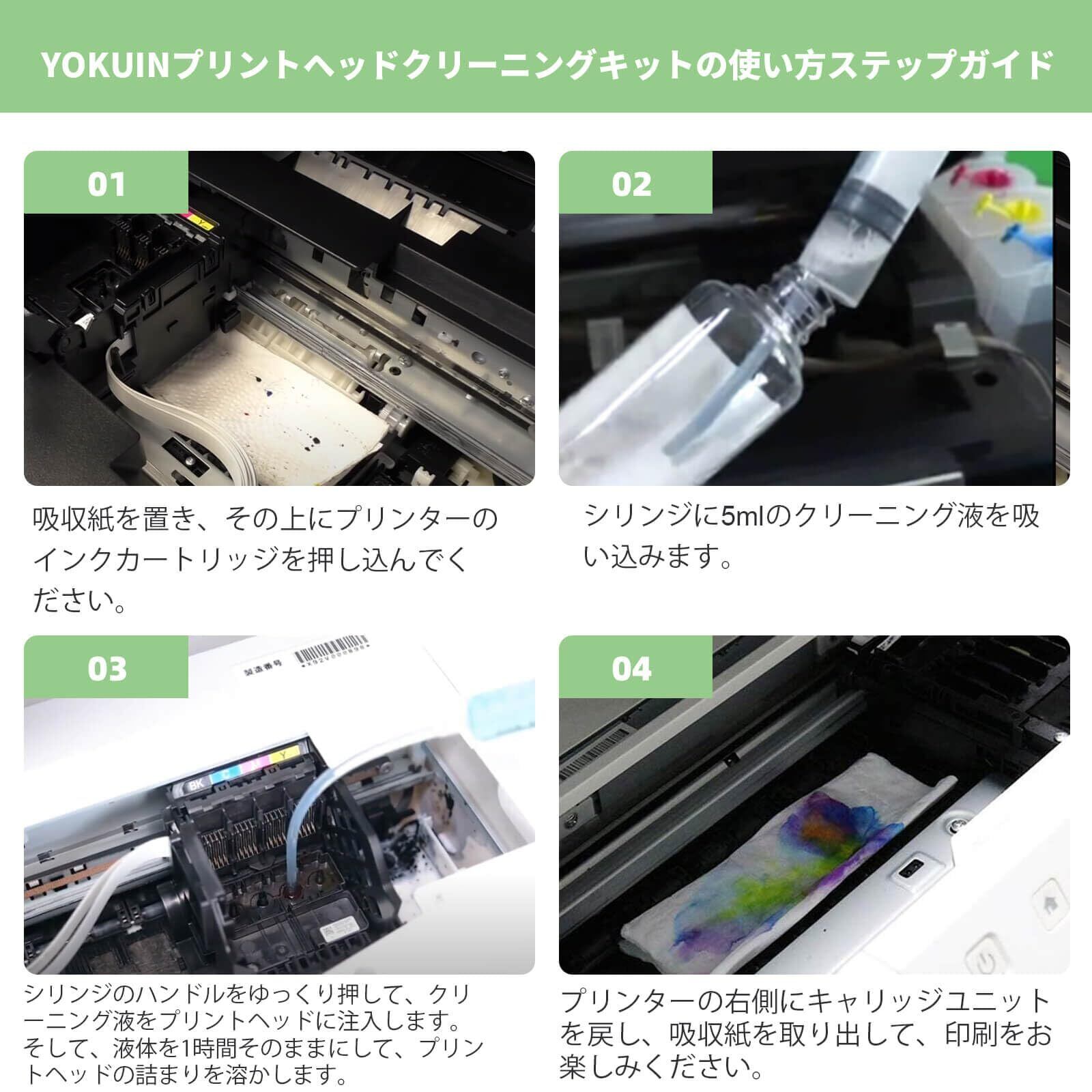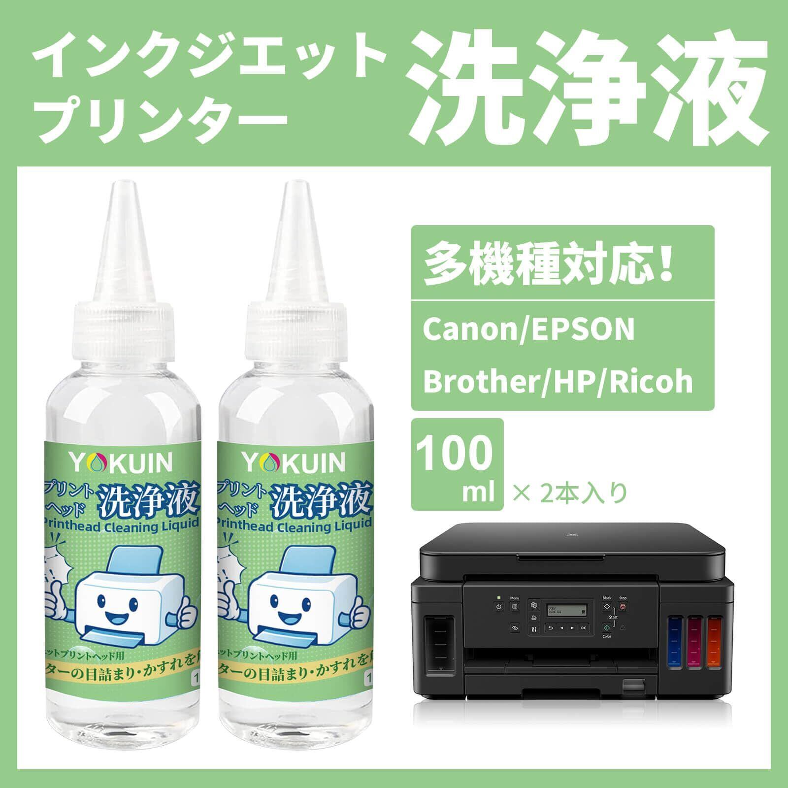 【万能対応のプリンタークリーニング液】YOKUINのクリーニング液は、エプソン、キヤノン、ブラザー、HPなどの主要インクジェットプリンターに対応し、幅広い機種で使用可能です。