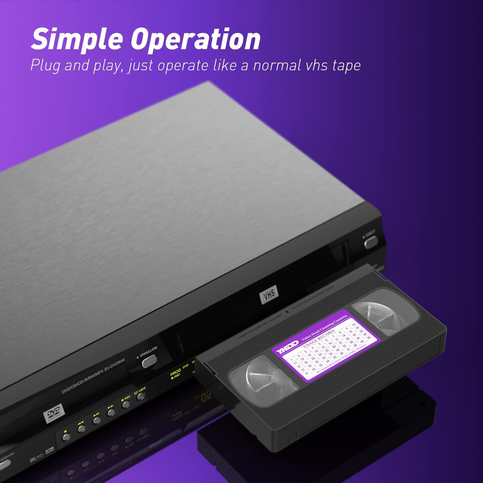 【簡単な操作】シンプルなクリーニングプロセス - VHSデバイスに挿入し、「再生」を押して停止して飛び出すまで動かします。
